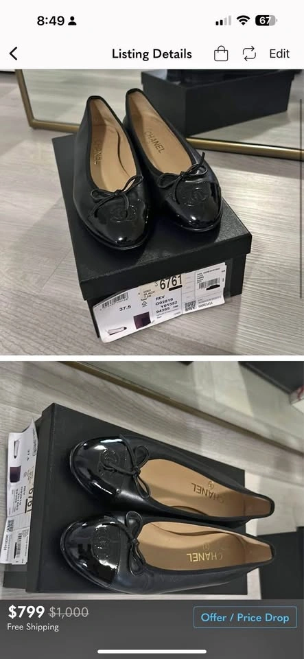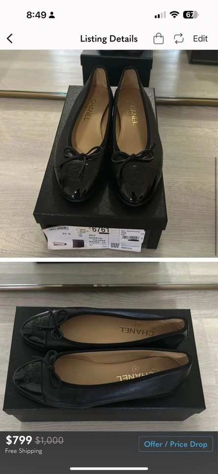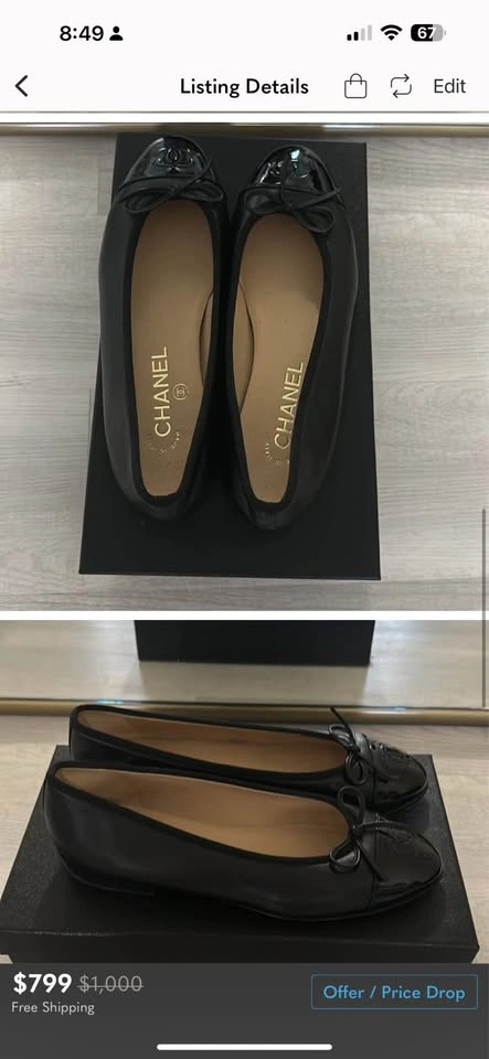 Chanel Ballet Flats in Lambskin, Black on Black, size 37.5. Wore it once, I think my foot grew UGH. Retail is 1025 before tax. Offer me your best offer.
