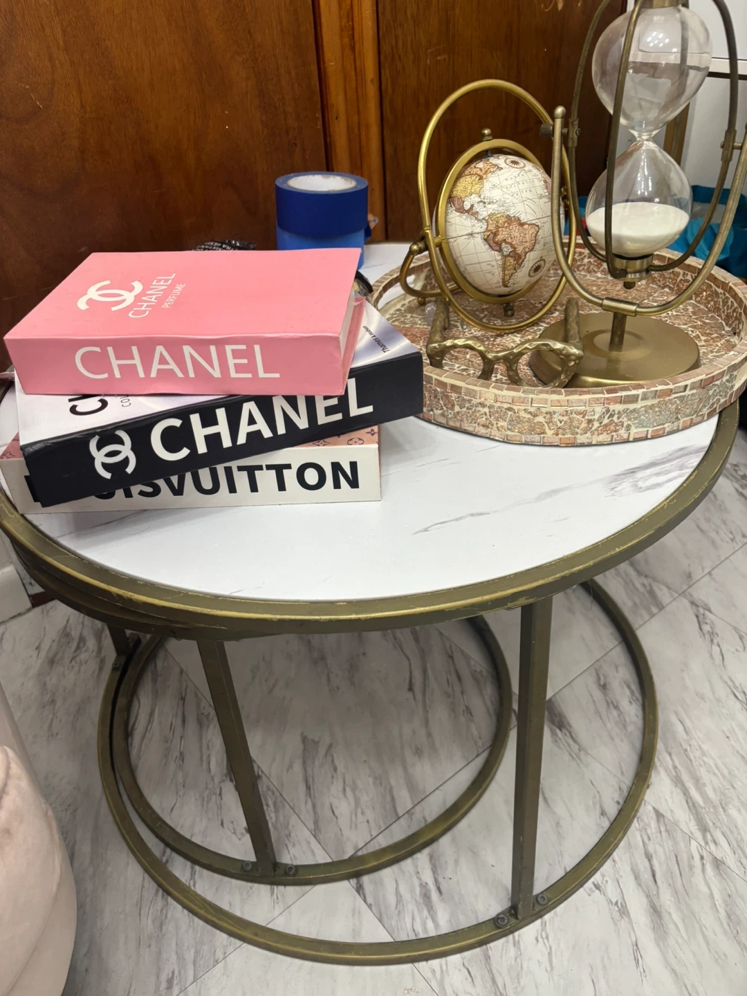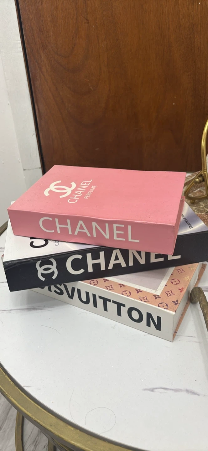 Selling a set of decorative books from Chanel and Louis Vuitton. These are perfect for adding a touch of luxury to your coffee table or bookshelf! They are in great condition and ready for a new home and beautiful gold decoration