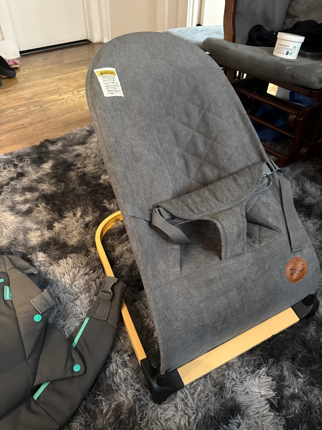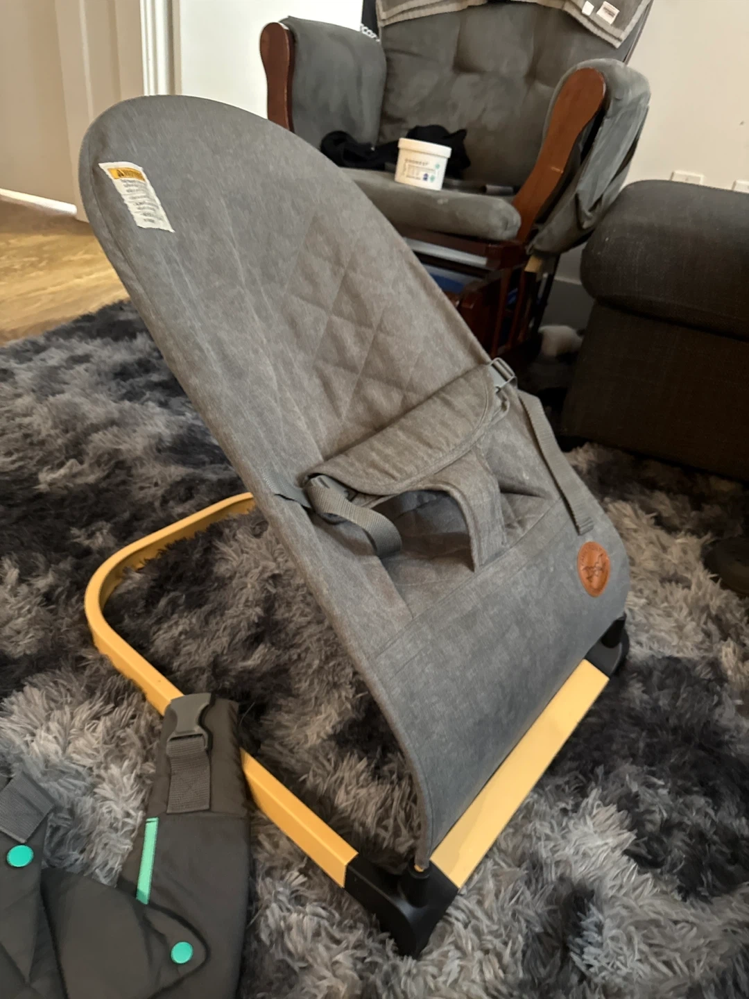 70Selling a baby rocker in great condition! This stylish and comfortable rocker is perfect for soothing your little one. Its sleek design will fit seamlessly into any home decor. It's lightweight and easy to move around the house, so you can keep your baby close by while you get things done. Easy clean.