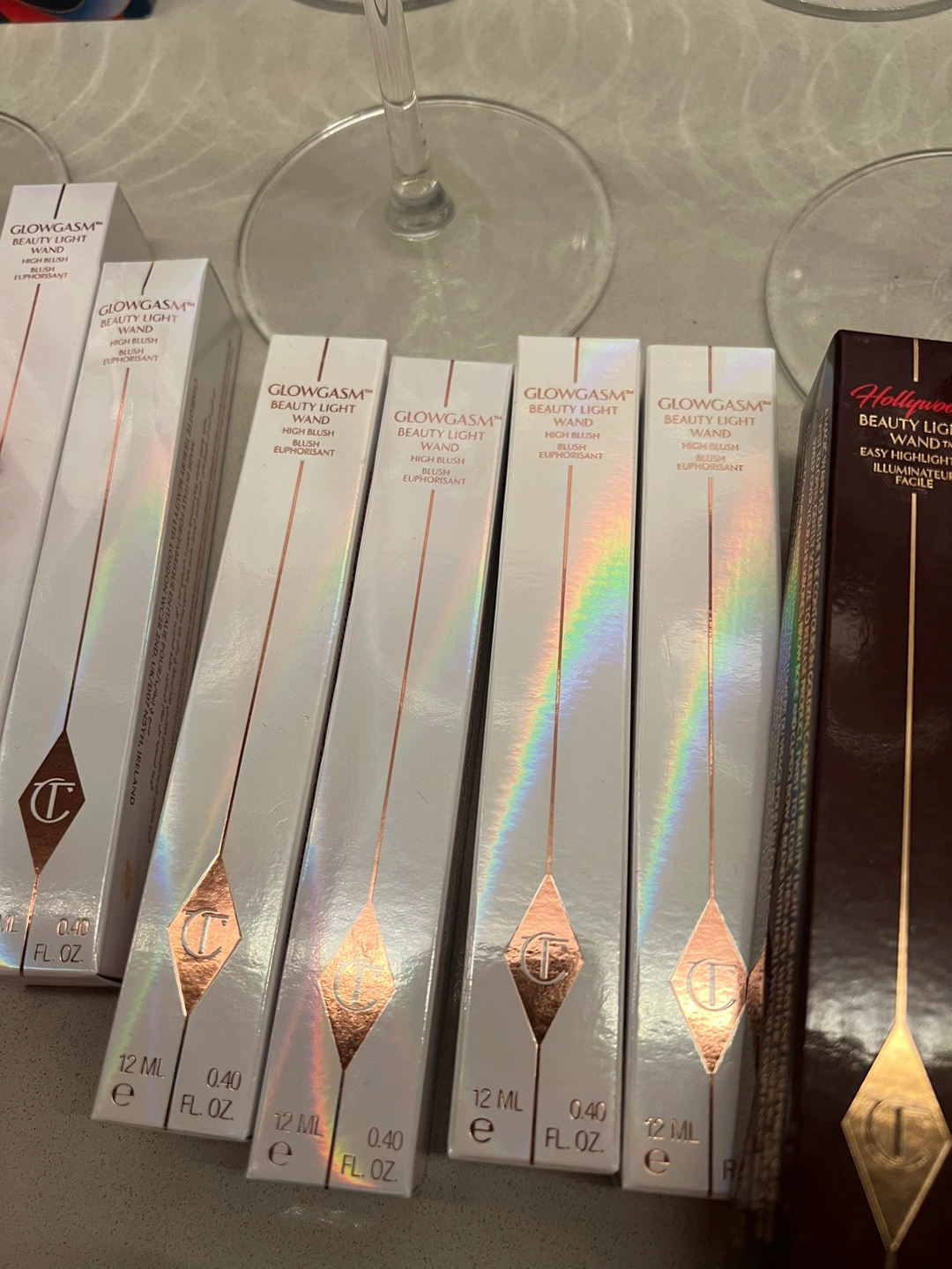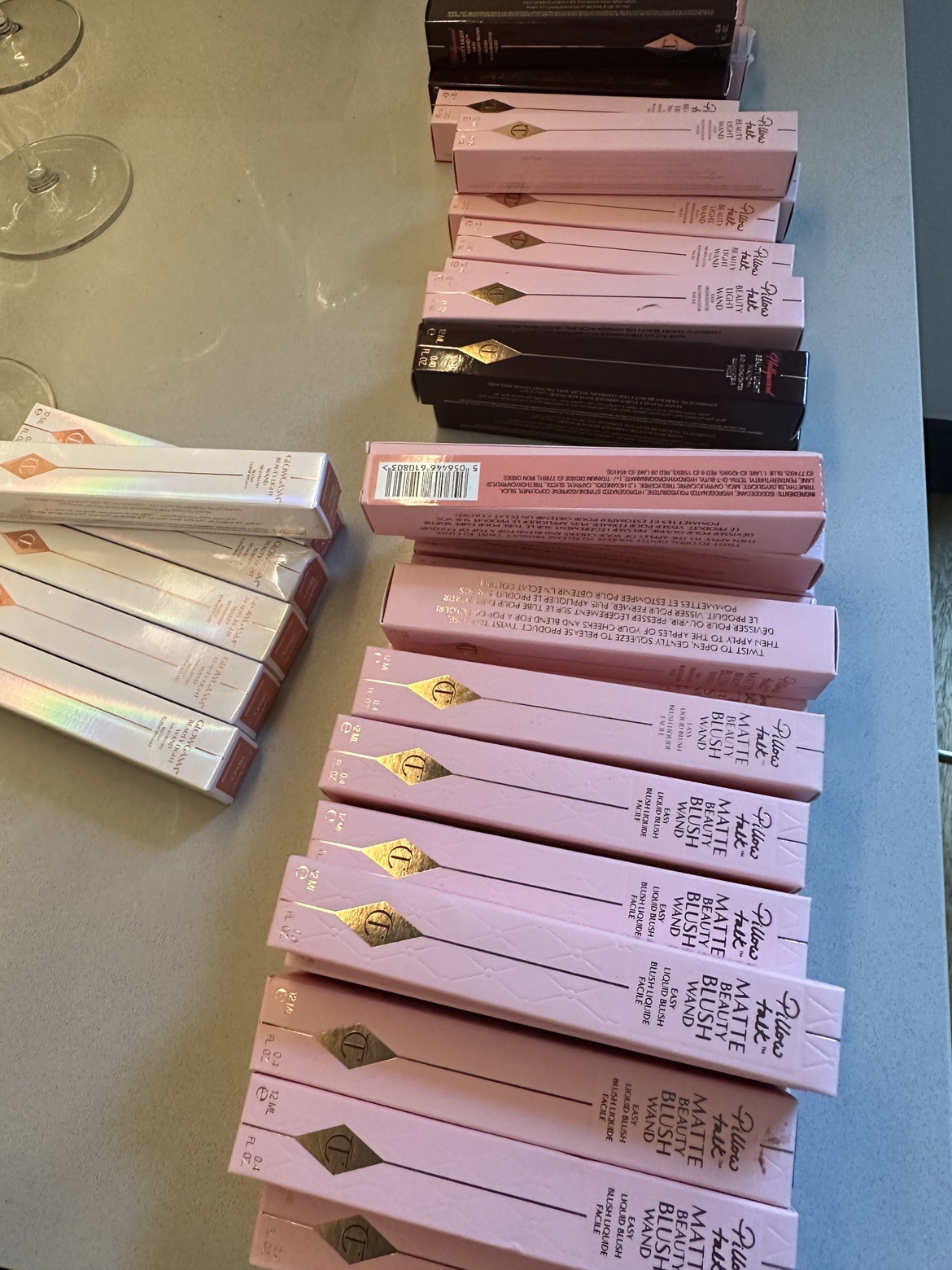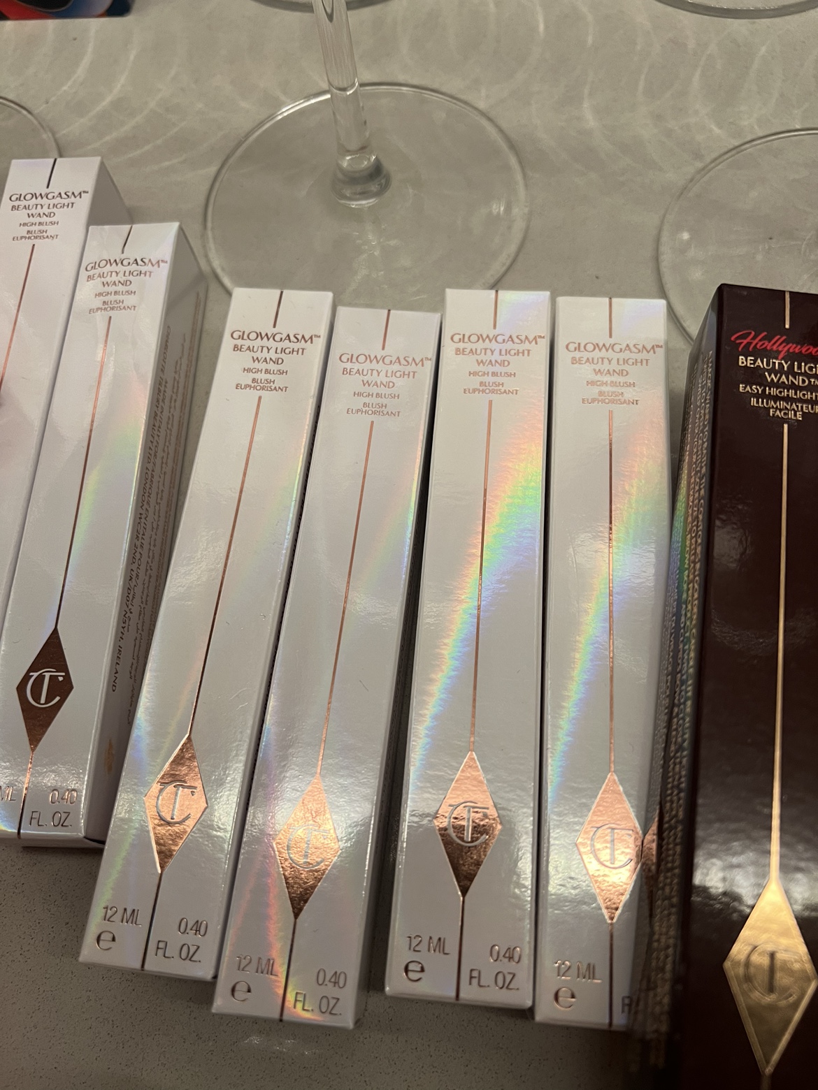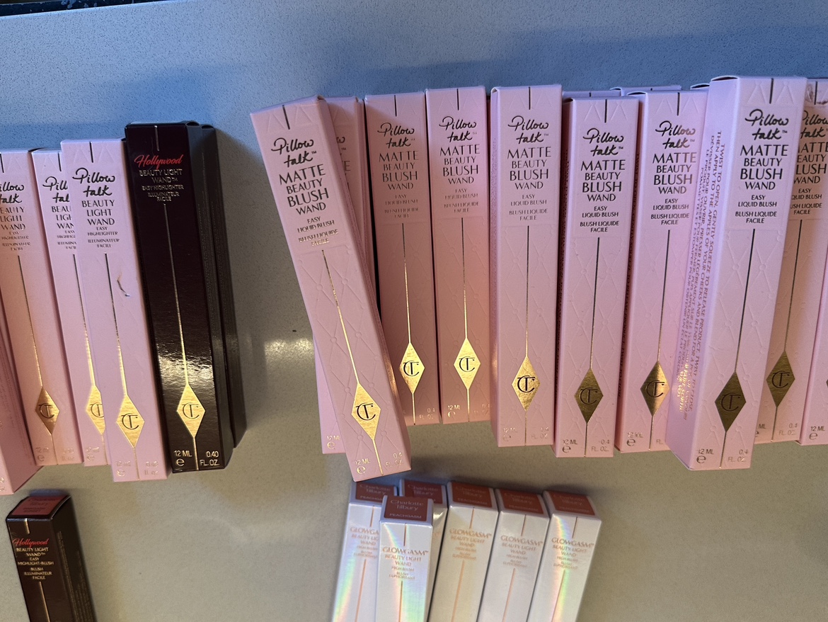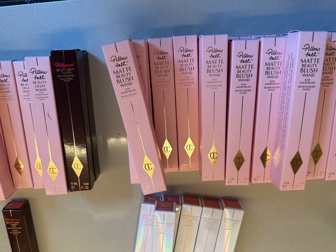 Brand New, Authentic. With boxes 1 for $20. This is a whole lot consisting of 40 pieces for $720. Half a lot for $360 Lot contains: Charlotte Tilbury Pillow Talk Matte Beauty Blush Wholesale Glowgasm Beauty Light Wand High Blush Hollywood Beauty Light Wand Easy Highlight