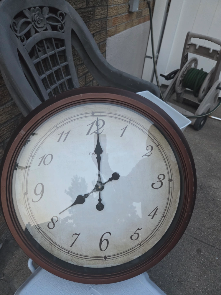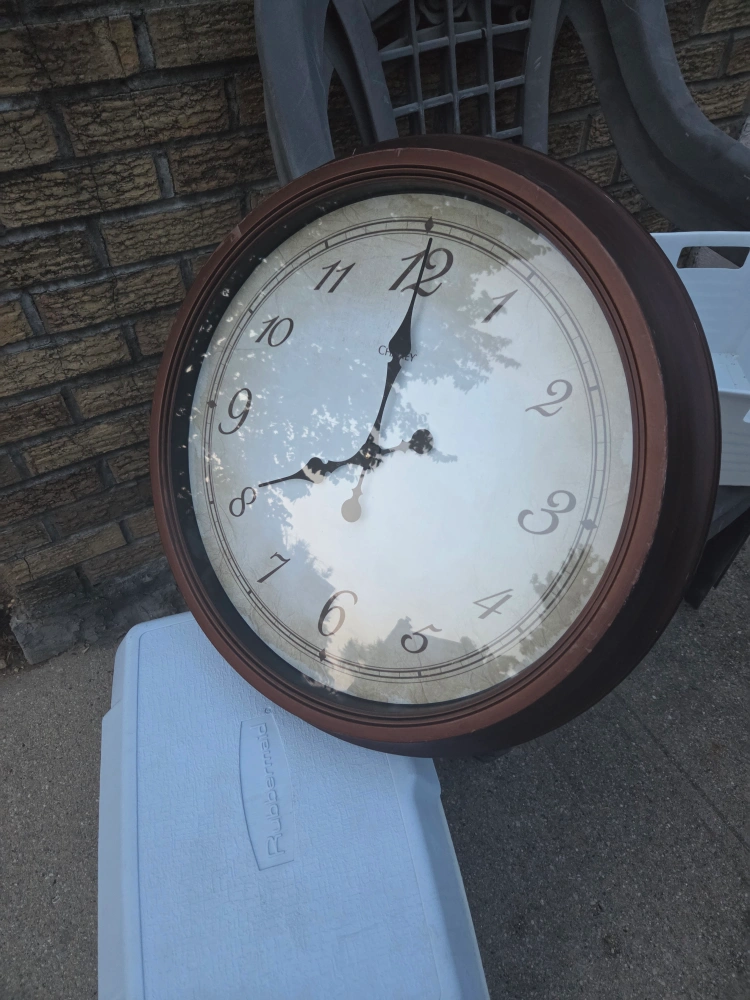Selling a Chateau round wall clock! It has a classic design that would look great in any room. The clock face is easy to read, and it's in good condition.