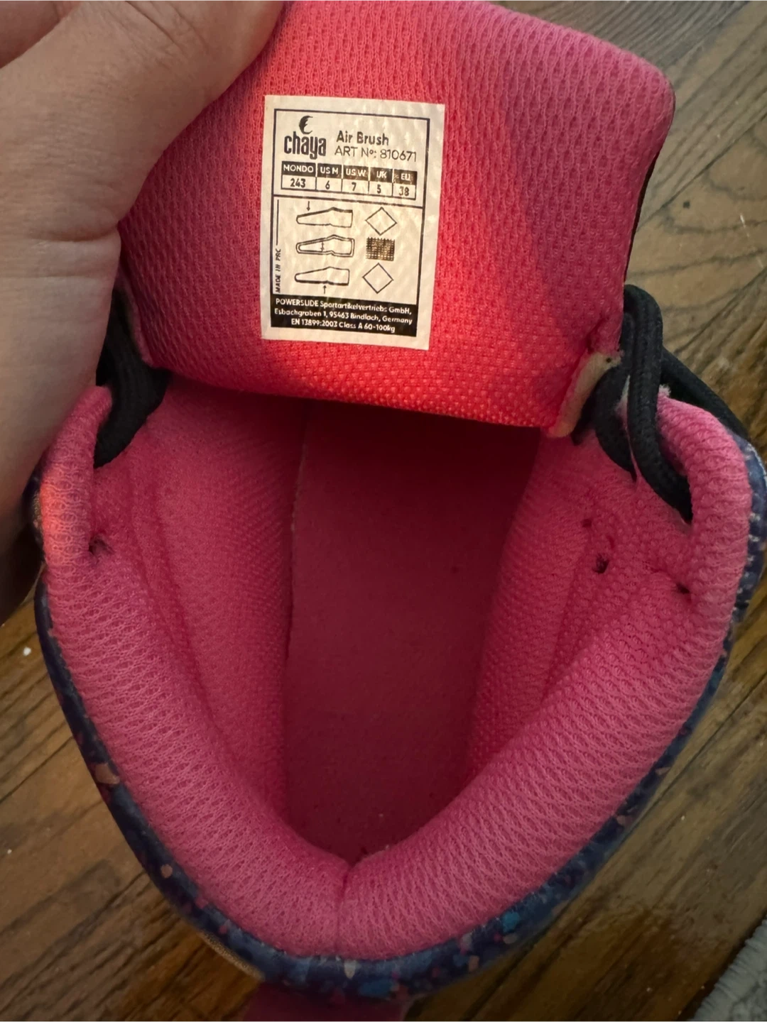 10Selling a pair of Chaya Air Brush vintage rollerskates! They are a US women's size 7 and come with the original box. Perfect for some retro fun! Only used a couple of times, I’m selling just because I bought the wrong size.