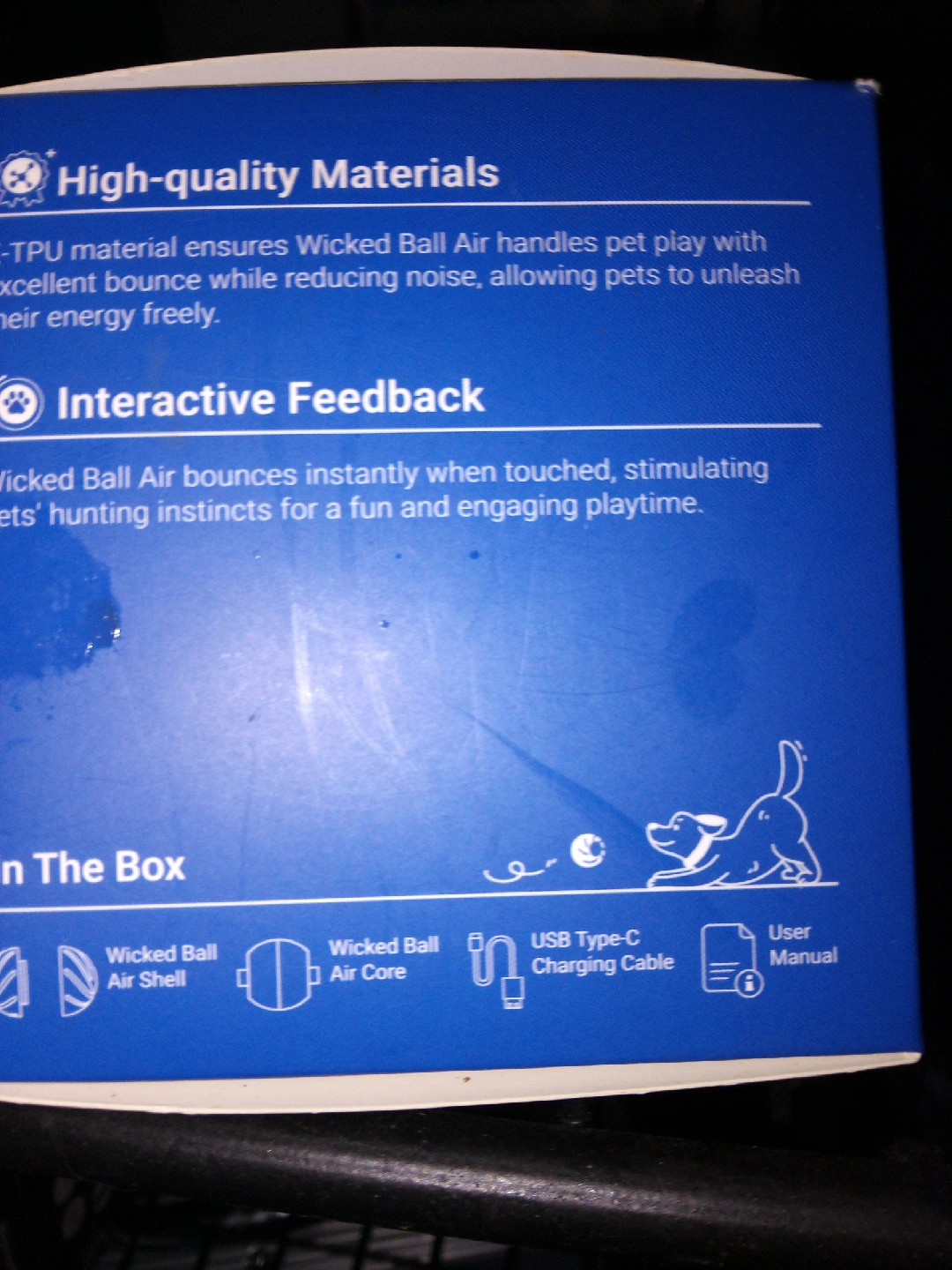 Selling a Cheerble Wicked Ball Air, a smart and interactive pet toy for dogs of medium and large sizes! It's designed with high-quality TPU material to ensure it handles pet play well, providing excellent bounce while reducing noise, allowing pets to unleash their energy freely. The Wicked Ball Air bounces instantly when touched, stimulating pets' hunting instincts for a fun and engaging playtime. It comes with a Wicked Ball Air shell, a Wicked Ball Air core, a USB Type-C charging cable, and a user manual. Box included