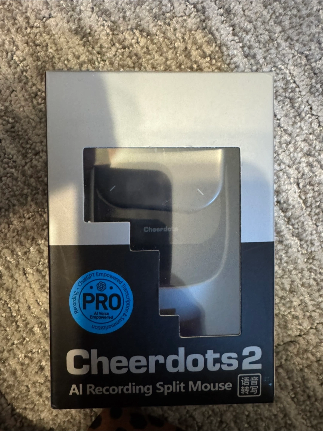 Selling a Cheerdots 2 AI Recording Split Mouse. This mouse is ChatGPT empowered and designed for recording, transcription, and summarization. It's an AI Voice Empowered device. Comes with the original box!