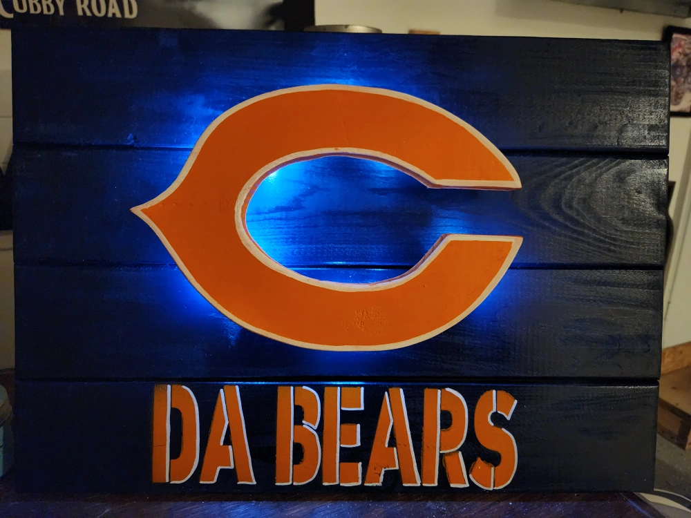 Show your team spirit with this Chicago Bears LED sign! It features the Bears logo illuminated with a cool light. Perfect for your game room, bar, or any space where you want to display your love for Da Bears.