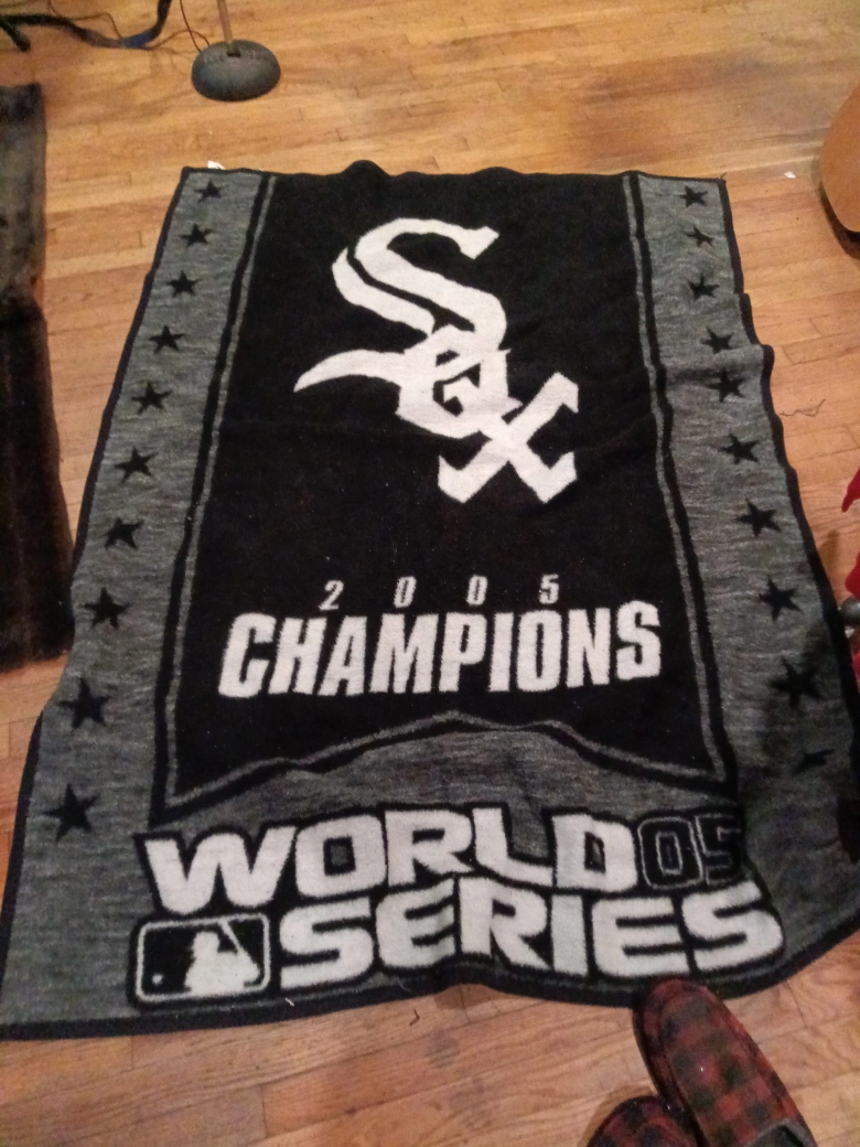 10Selling a Chicago White Sox blanket commemorating their 2005 World Series victory! It features the team logo and '2005 Champions' text. A great piece for any Sox fan!