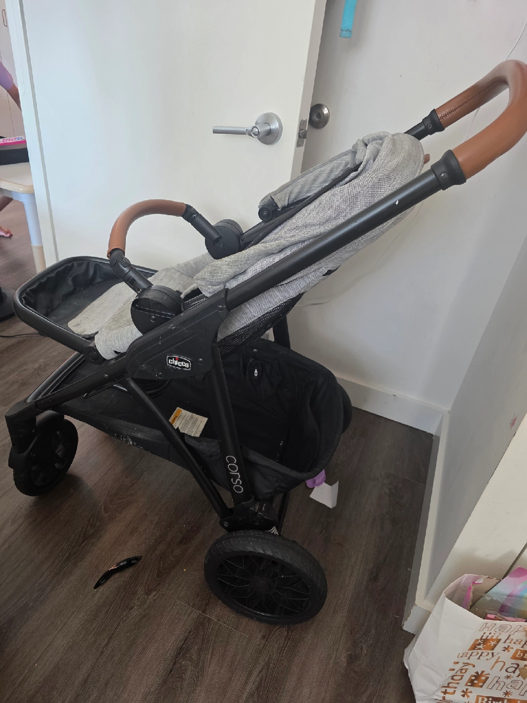 75Selling a Chicco Corso LE Modular Stroller. It's in good condition and ready for a new home! The stroller is gray and black. It is a modular stroller.