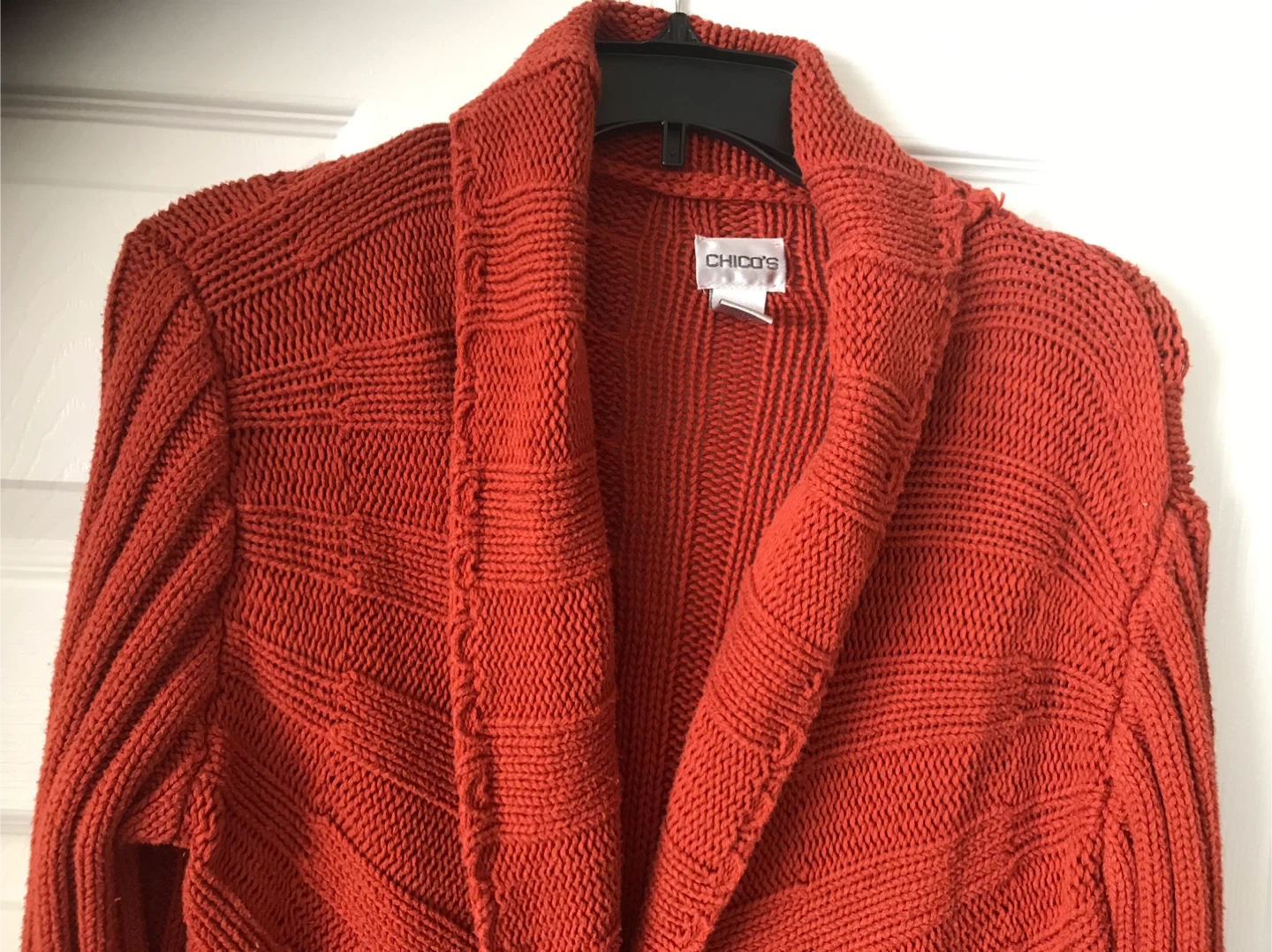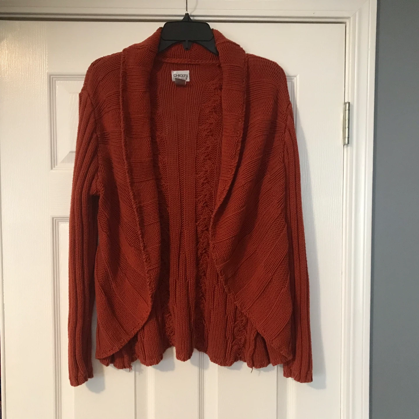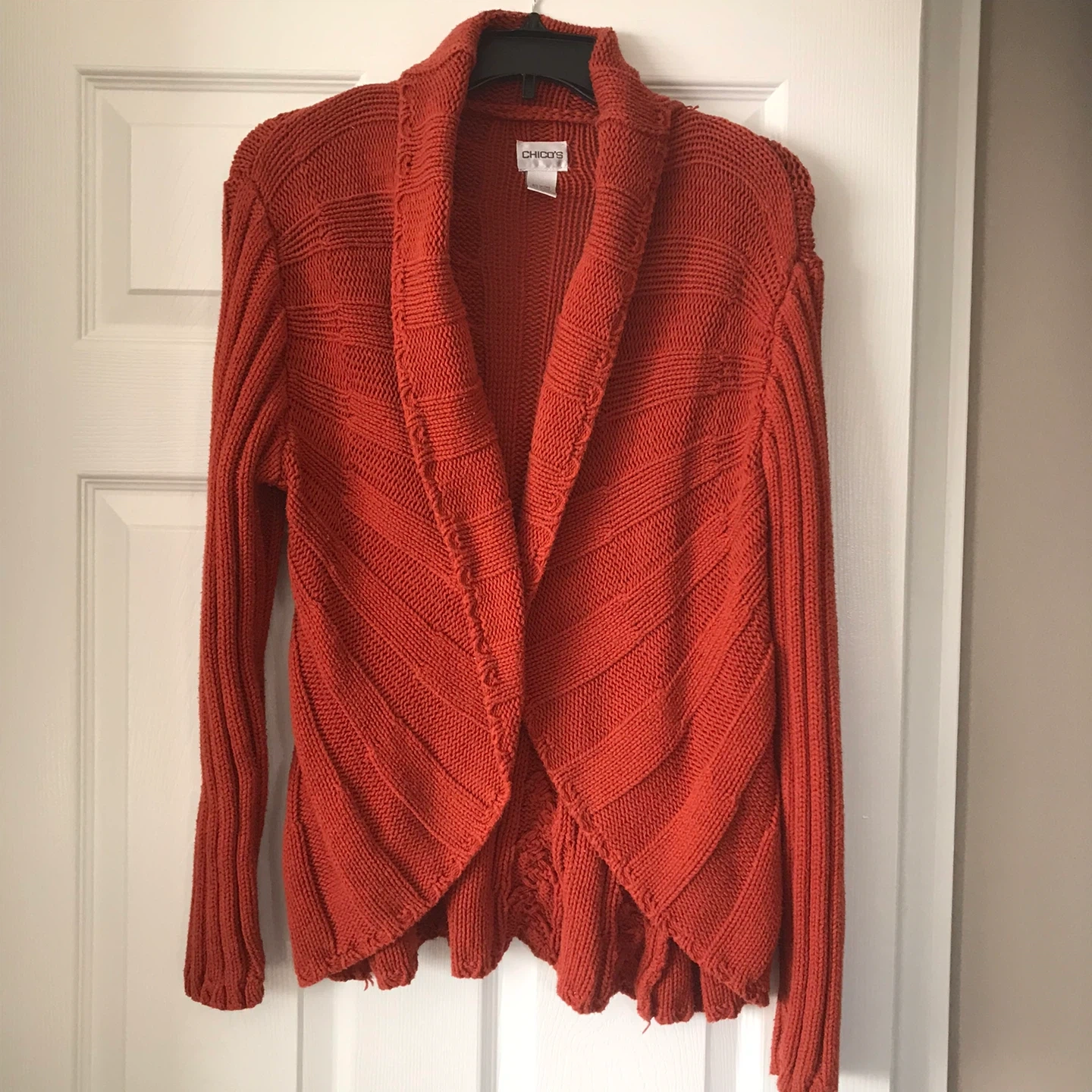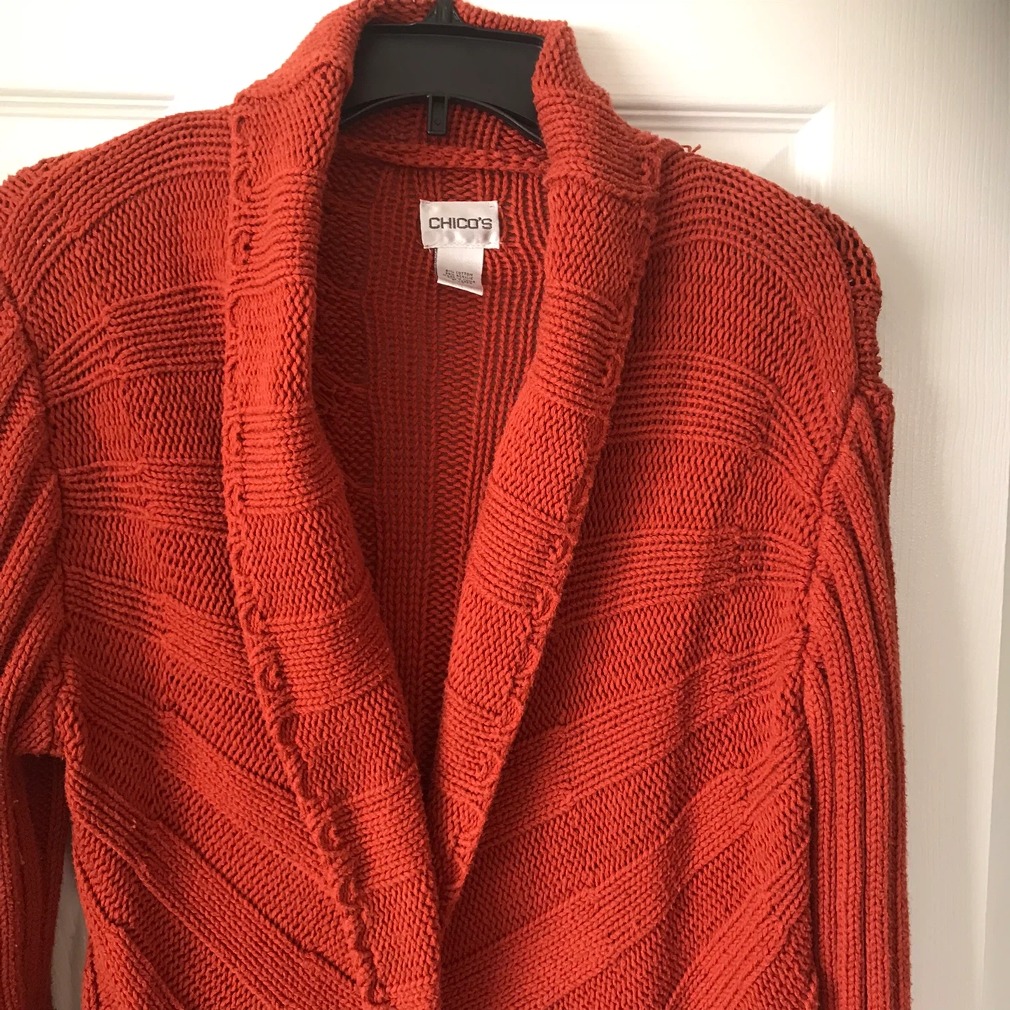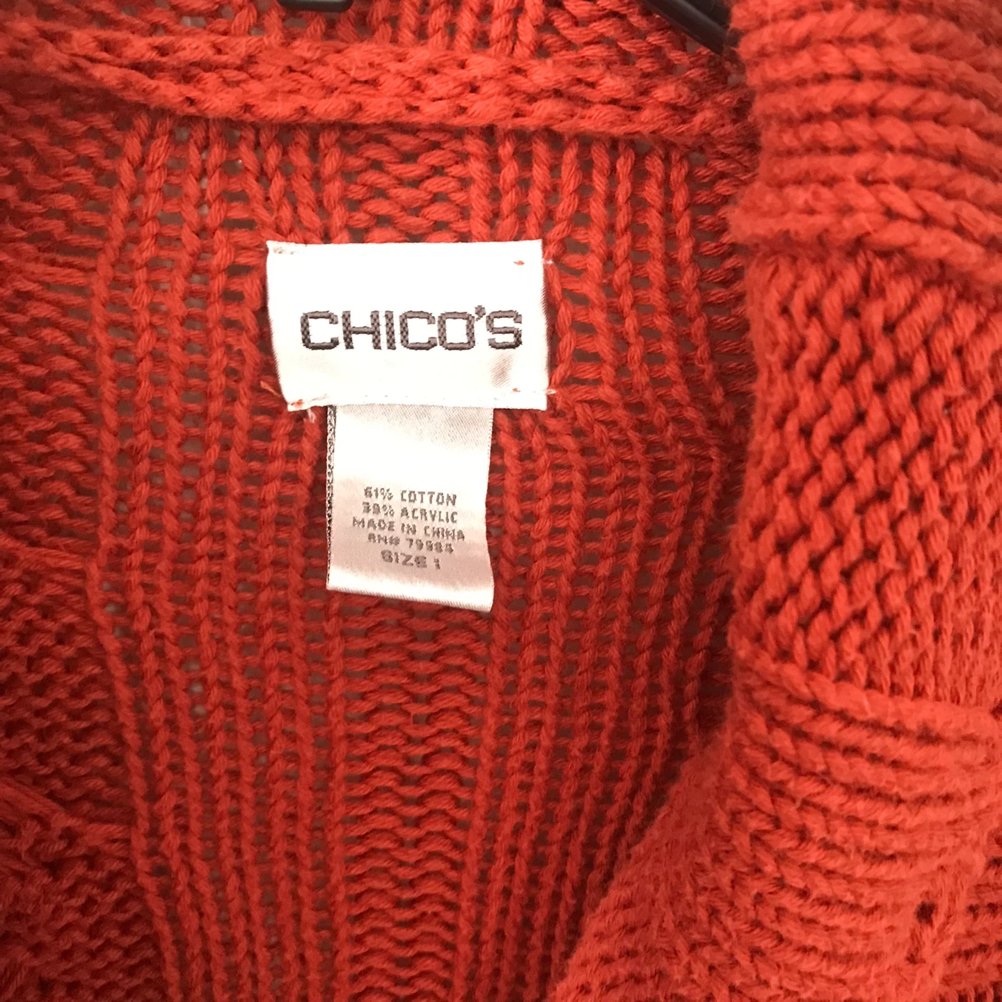 65Selling a Chico's cardigan in a lovely orange hue! This is a size 1. It's made from a blend of 61% cotton and 39% acrylic. Perfect for adding a pop of color and warmth to any outfit!
