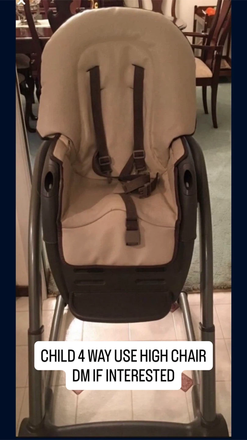 Selling a child's high chair that can be used in 4 different ways! It's in great condition and ready for a new home