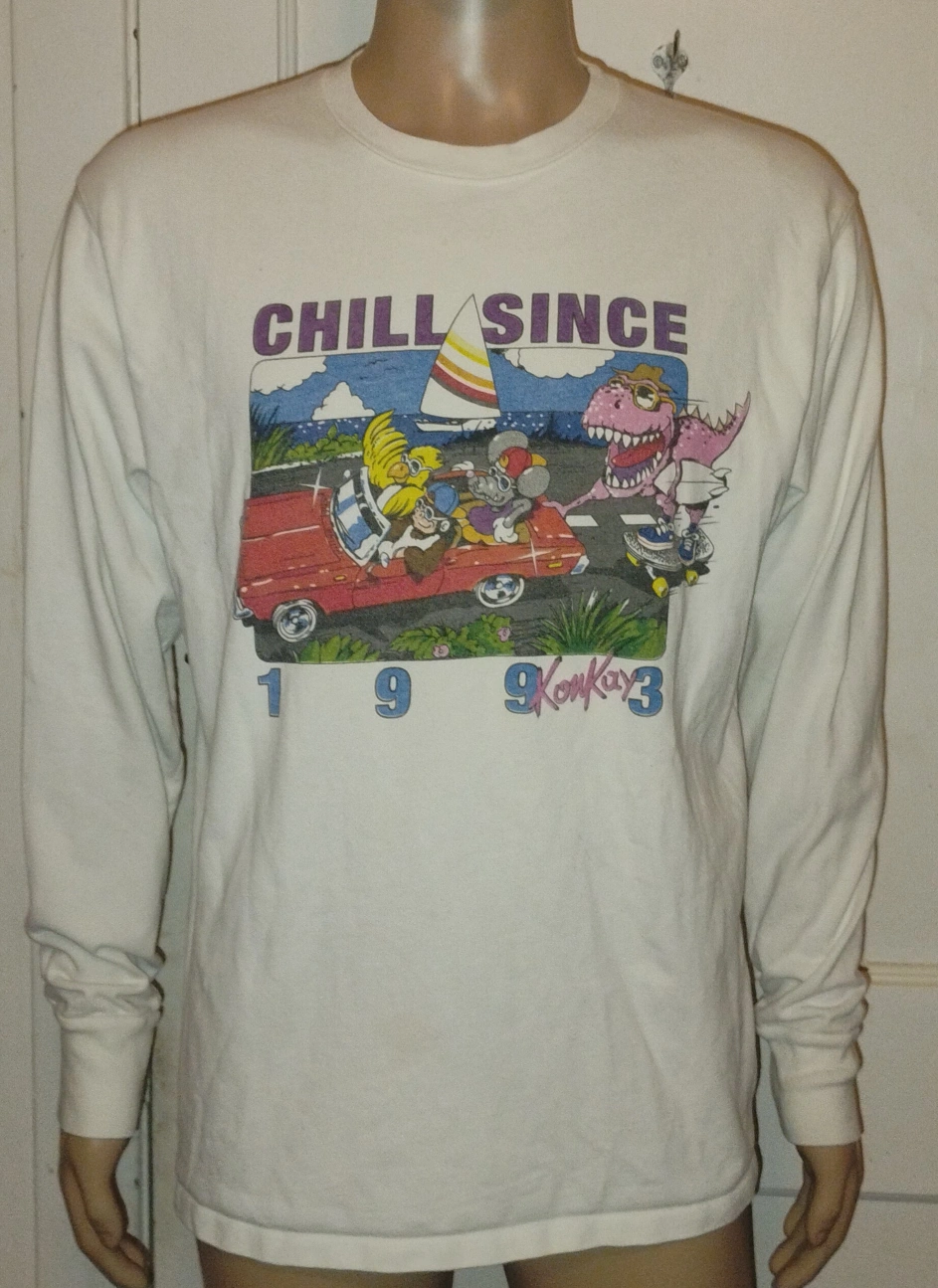 67Here's a long sleeve t-shirt with a fun graphic that says "Chill Since 1993". The graphic features cartoon characters in a car. And ready for a new home. Cash only Meet up spot Montrose and Milwaukee at Anytime except for midnight.