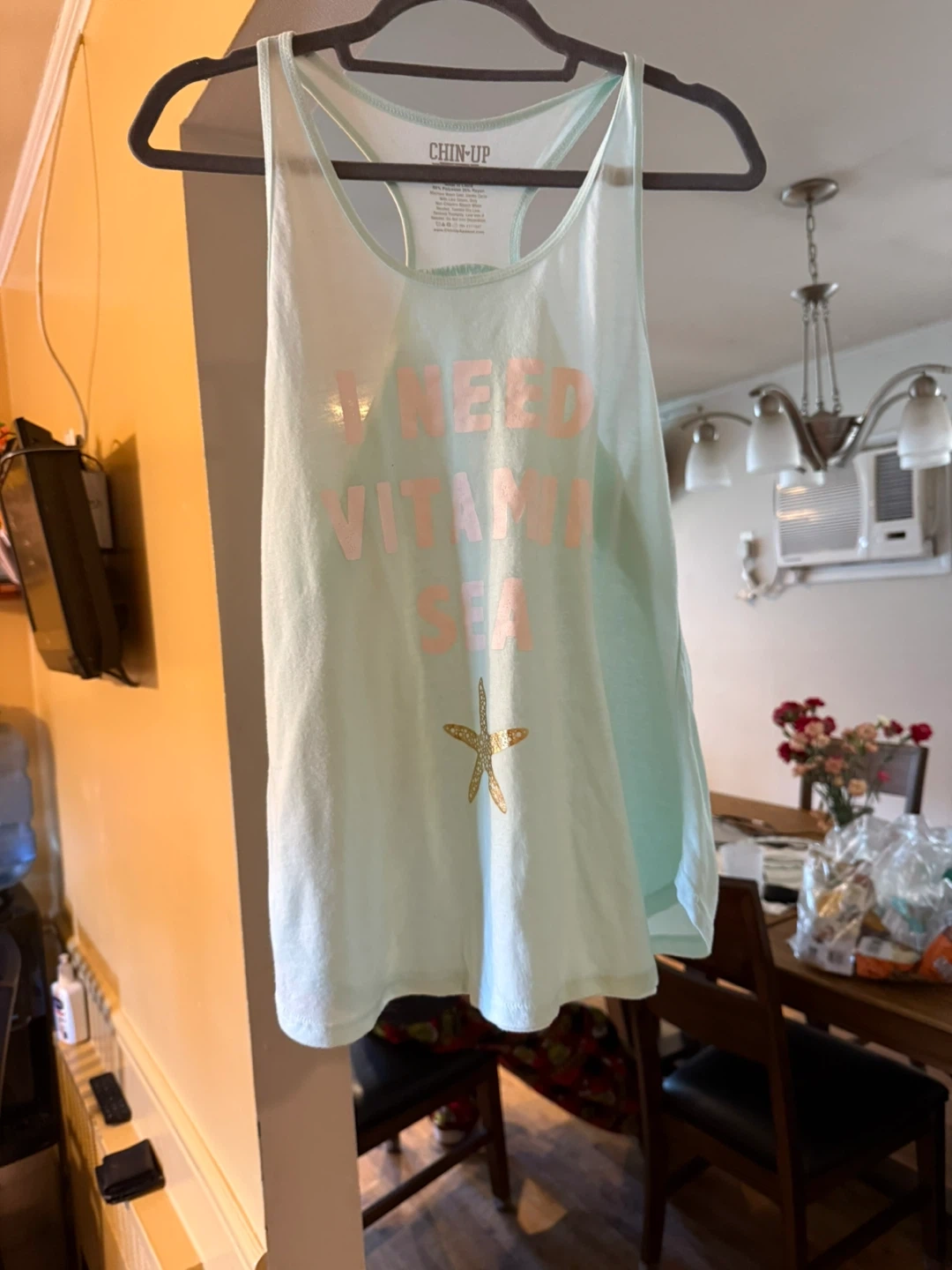 Cute Chin-Up tank top with 'I Need Vitamin Sea' printed on the front! Features a starfish design. Perfect for summer!