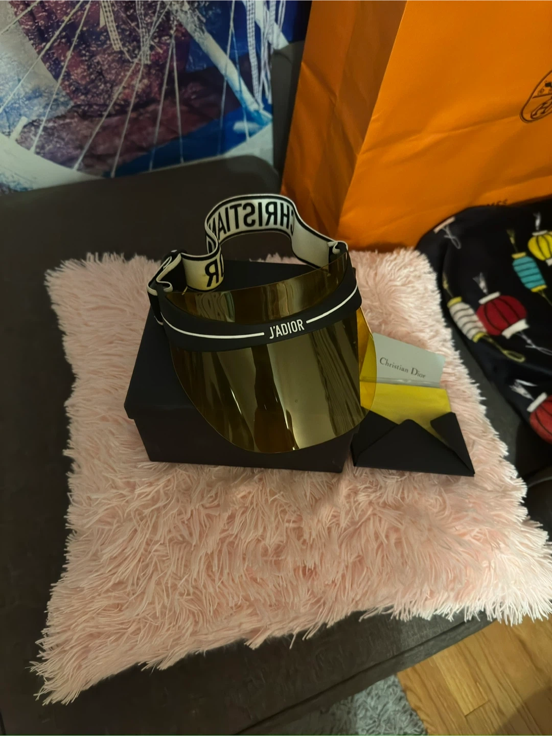 5Selling a Christian Dior J'Adior visor in gold color. It’s in great condition and comes with the original box! This stylish visor is perfect for adding a touch of luxury to any outfit. Worn twice .