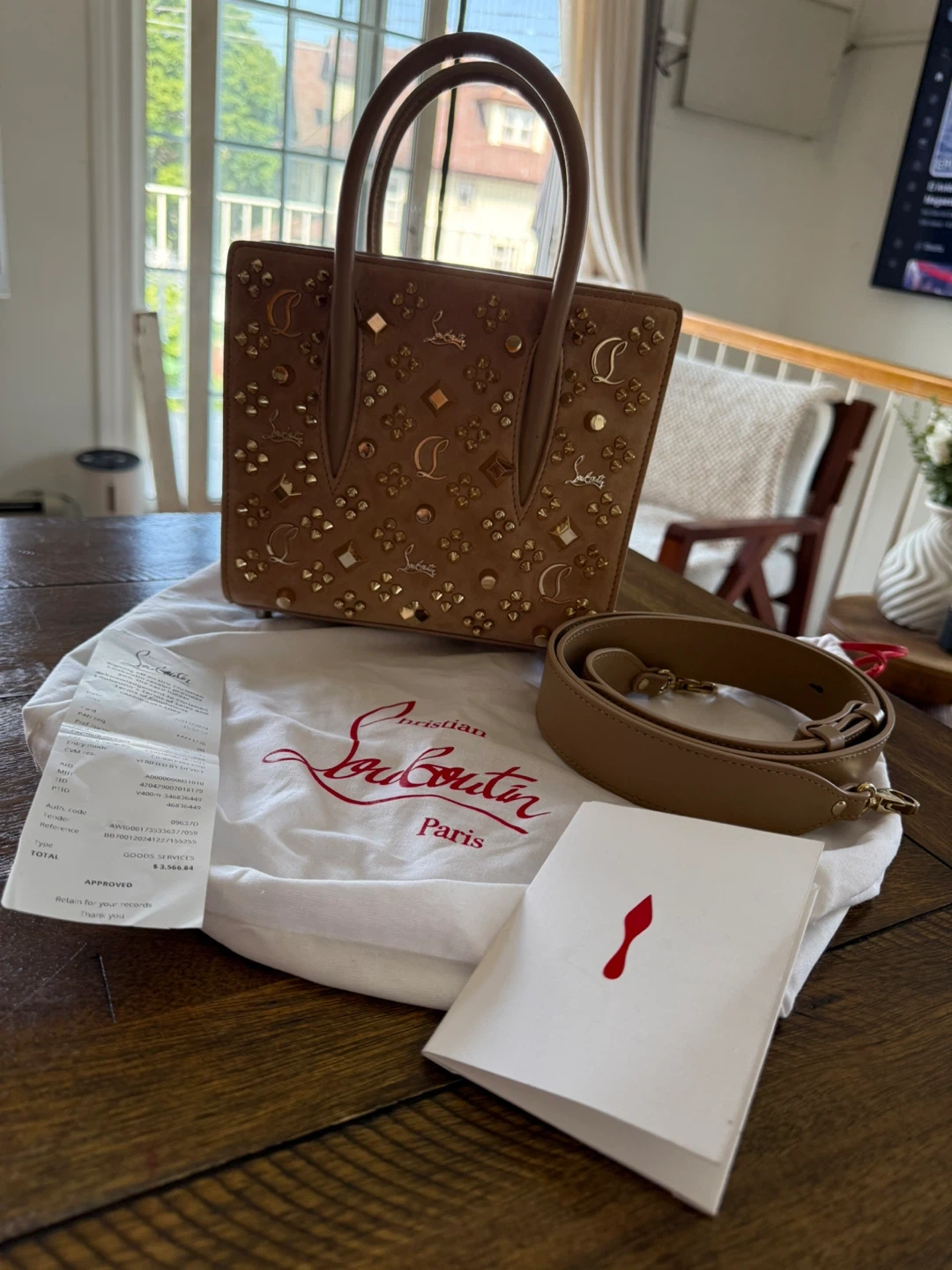 65Selling a Christian Louboutin Paloma S Mini bag in blush leather. This stylish bag features gold embellishments and comes with its original dust bag. The original purchase price was $2,435.63. It's in great condition and ready for a new home