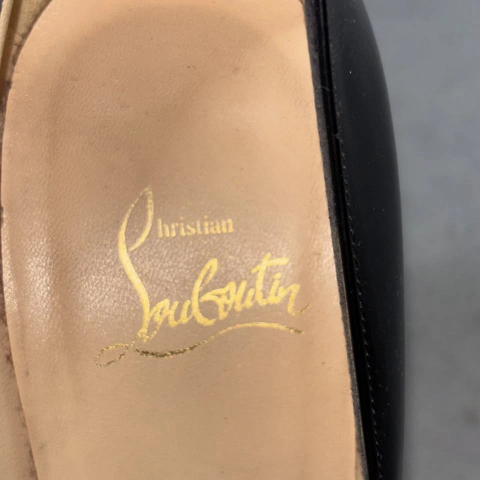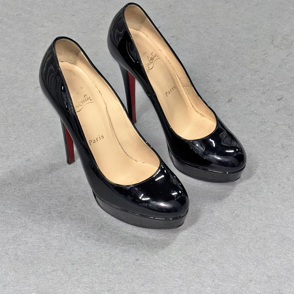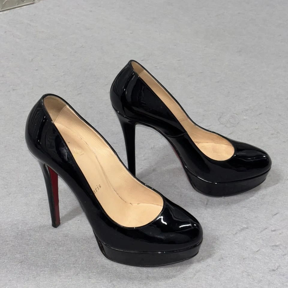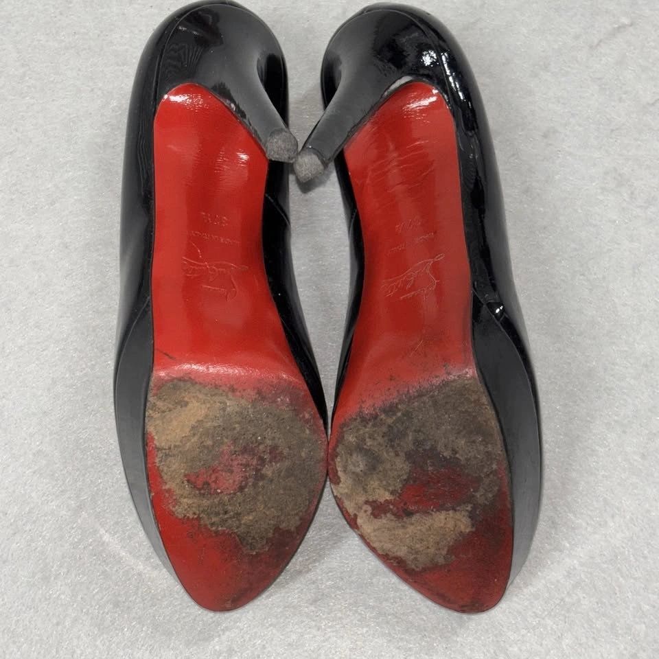 65Christian Louboutin Shoes Womens Size 37.5 Black Patent Leather Platform Heels Condition: Good pre-owned condition. Uppers and insoles show minor wear. Notable wear on the signature red soles (see photos for details). Classic round toe platform pumps in glossy black patent leather Signature red lacquered soles with embossed brand logo and "Made in Italy" marking Brand markings: "Christian Louboutin Paris" in gold on inner sole Made in Italy, size marked as 37.5 (approx US womens 7.5) Slip-on style, high stiletto heel with platform for comfortable lift Timeless Louboutin silhouette, ideal for special occasion or evening wear All pictured details and wear are exactly as shown