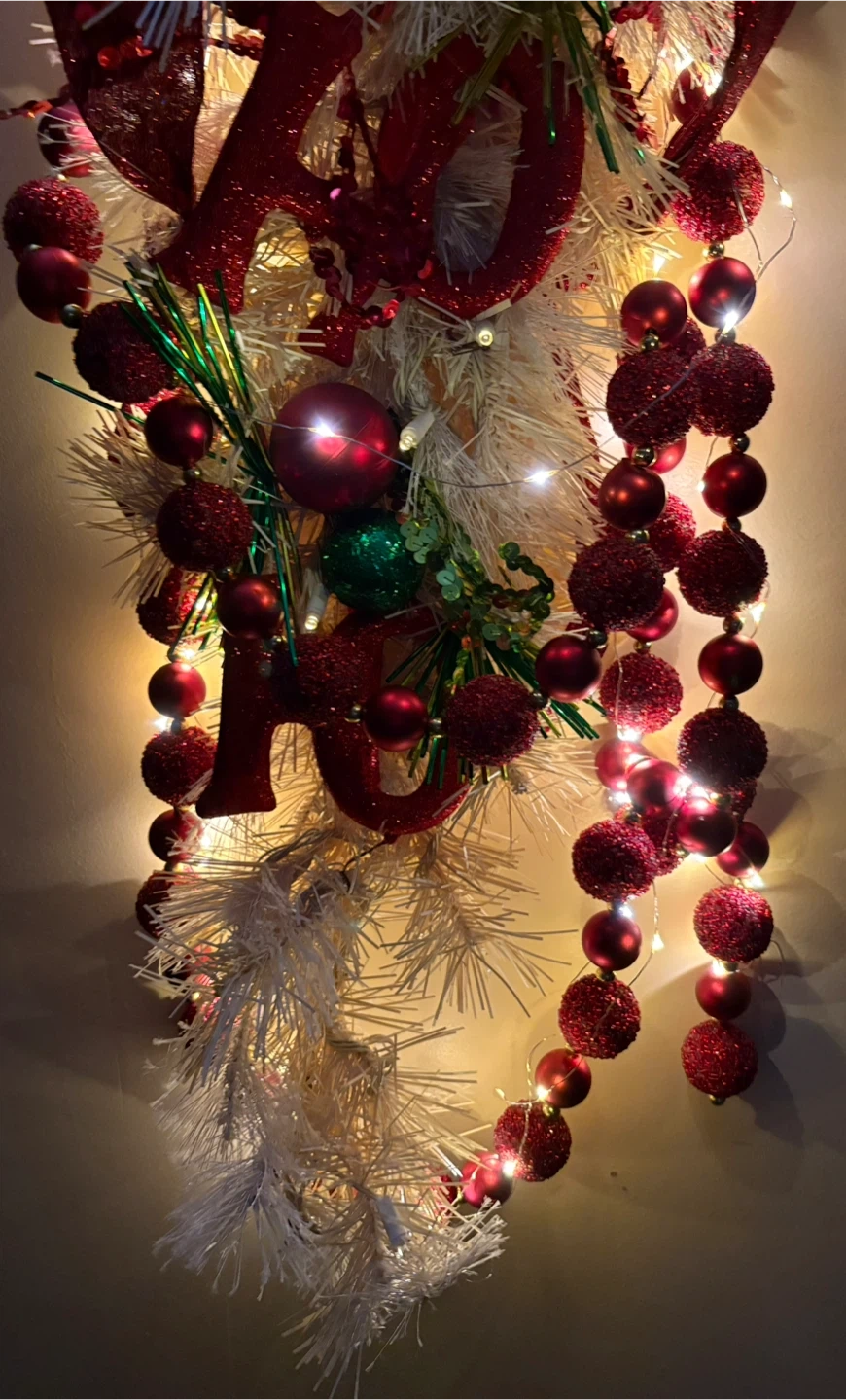 Add a touch of holiday cheer to your home with this festive Christmas HO HO HO door hanger! It features a beautiful combination of red, green, and white decorations, complete with a sparkling bow and warm lights. Perfect for spreading joy throughout the season