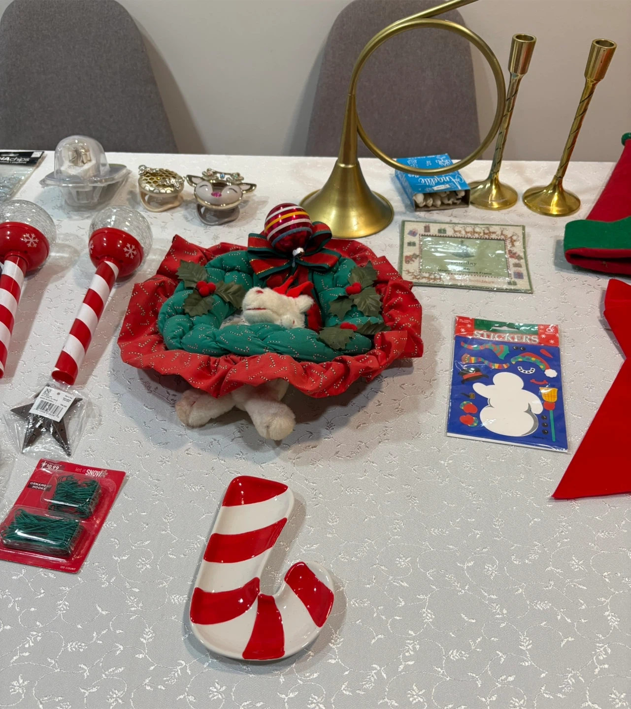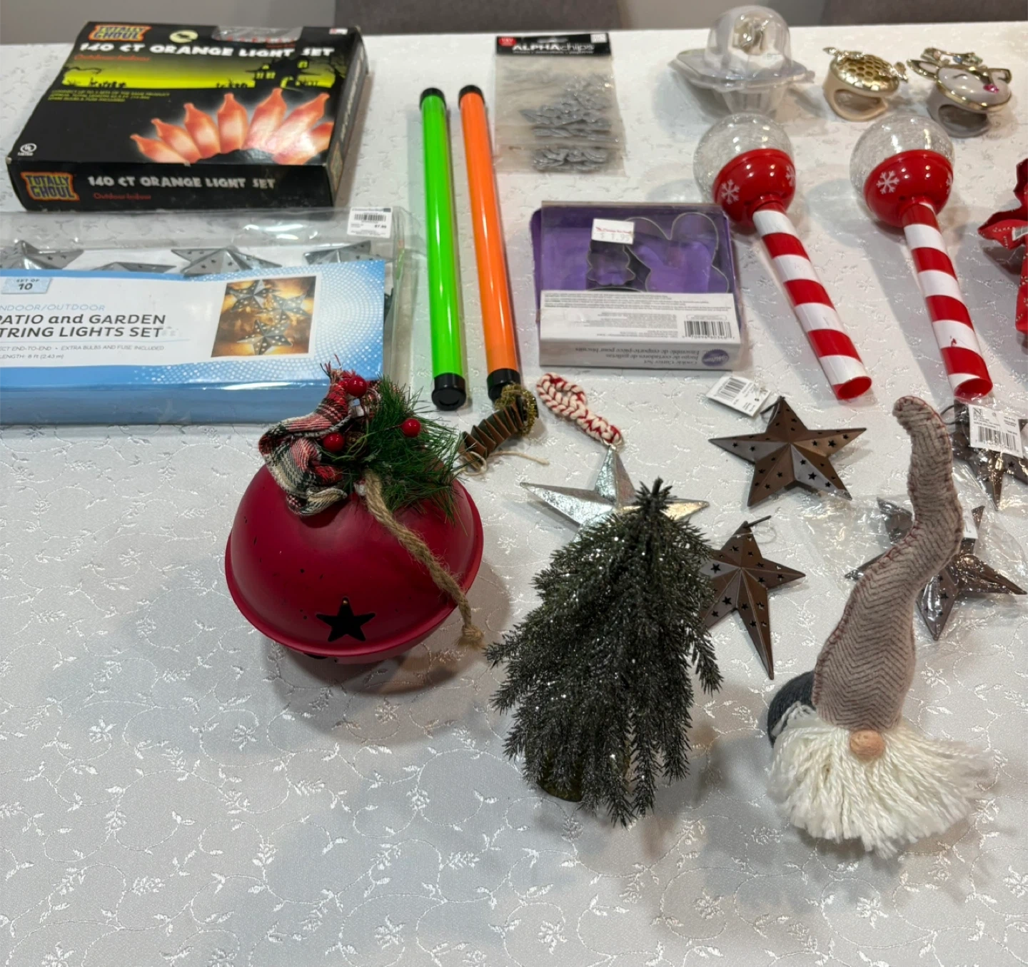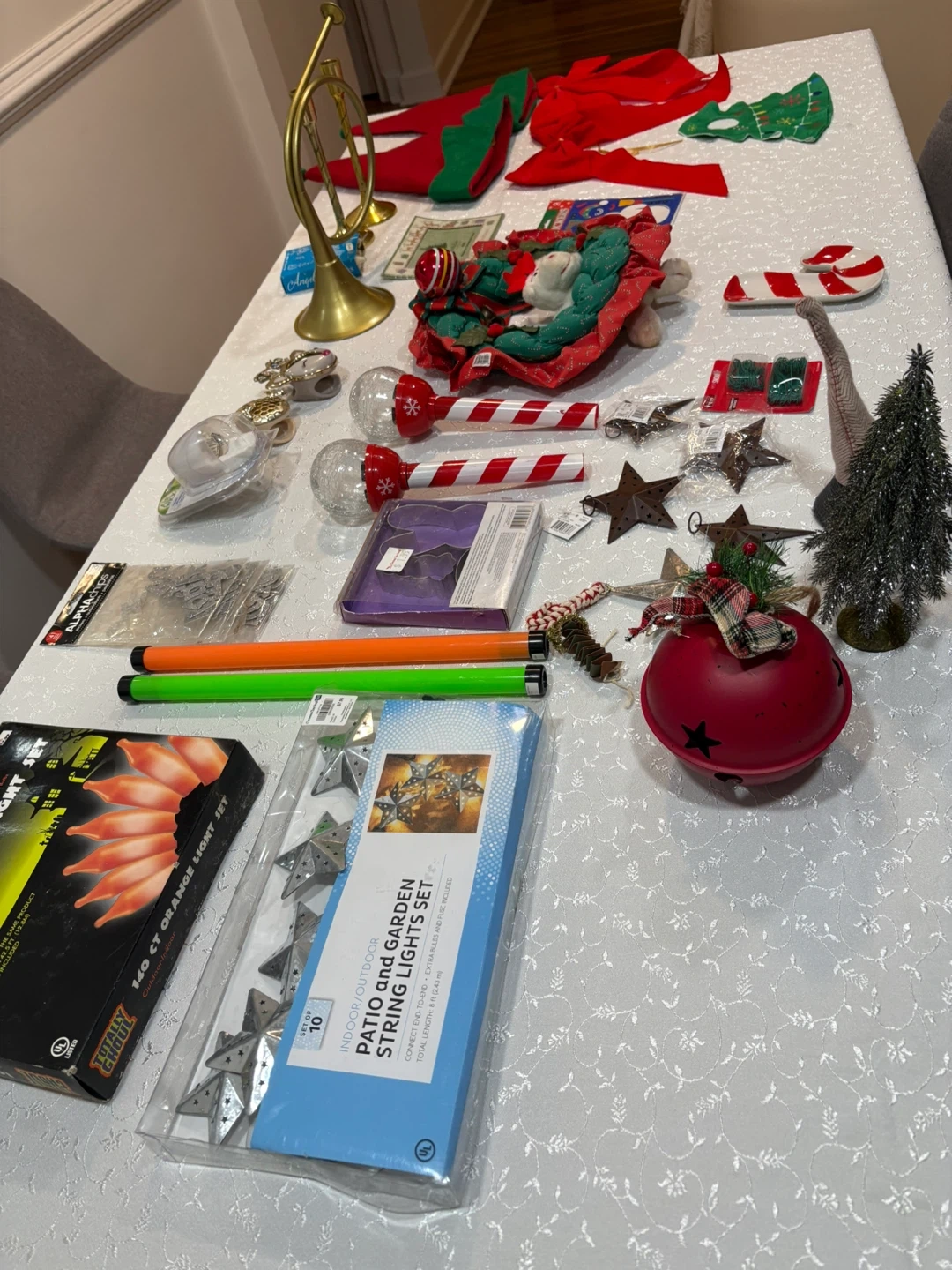 15I have a lot of Christmas and holiday decor items for sale. Includes elf hats, bows, a Christmas tree decoration, and other festive items. Perfect for adding some holiday cheer to your home!