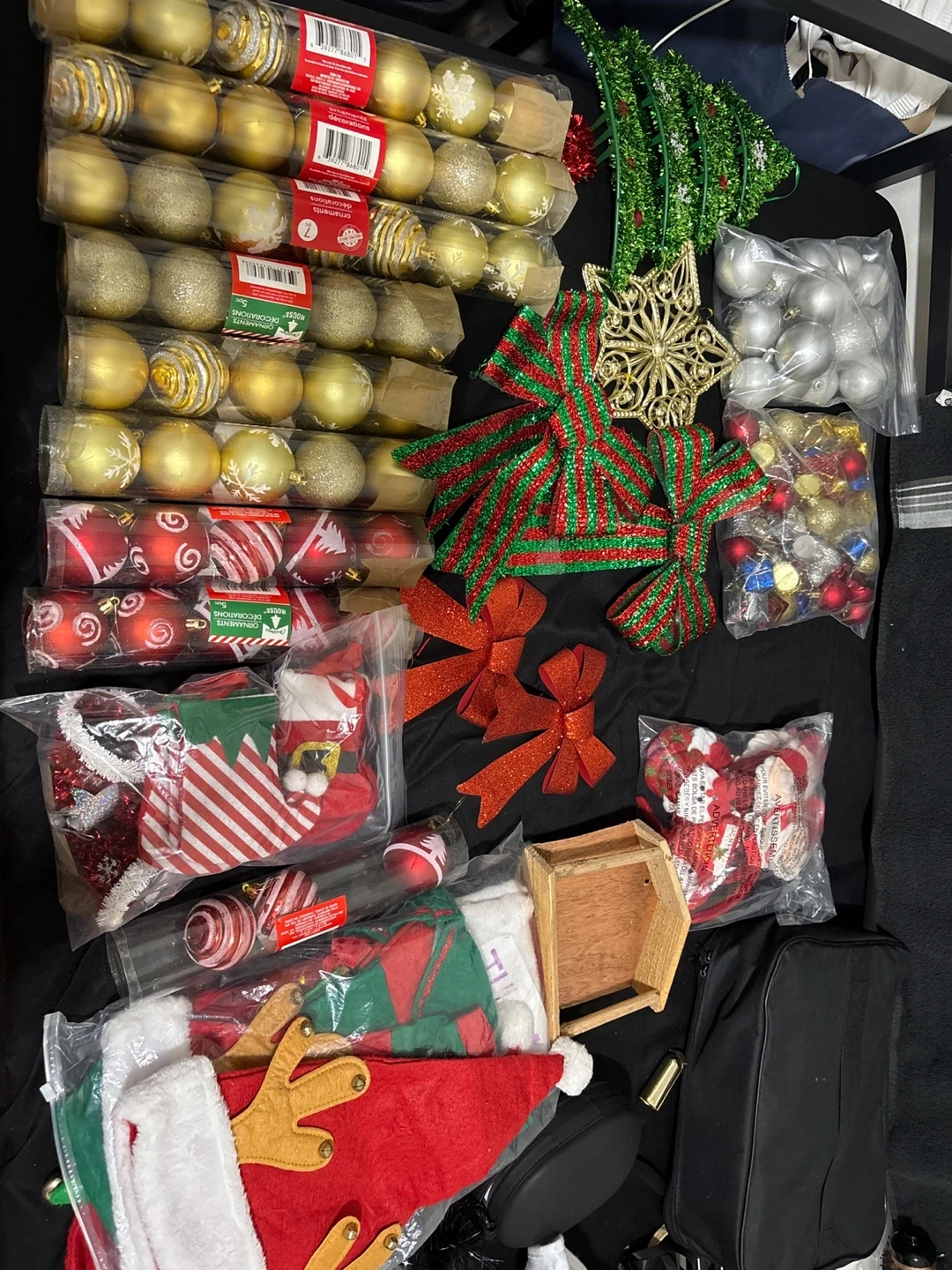Selling a variety of Christmas ornaments and decorations! Includes bows, baubles, and other festive items to brighten up your home for the holidays