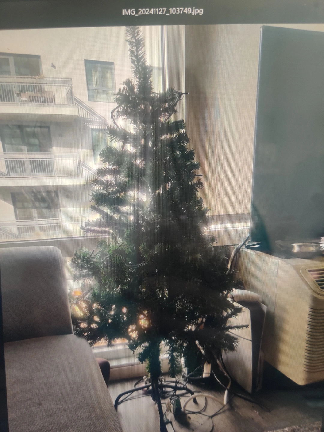 Selling a Christmas tree, 4.5 ft tall, along with tree ornaments.
