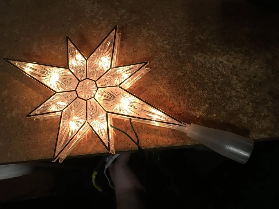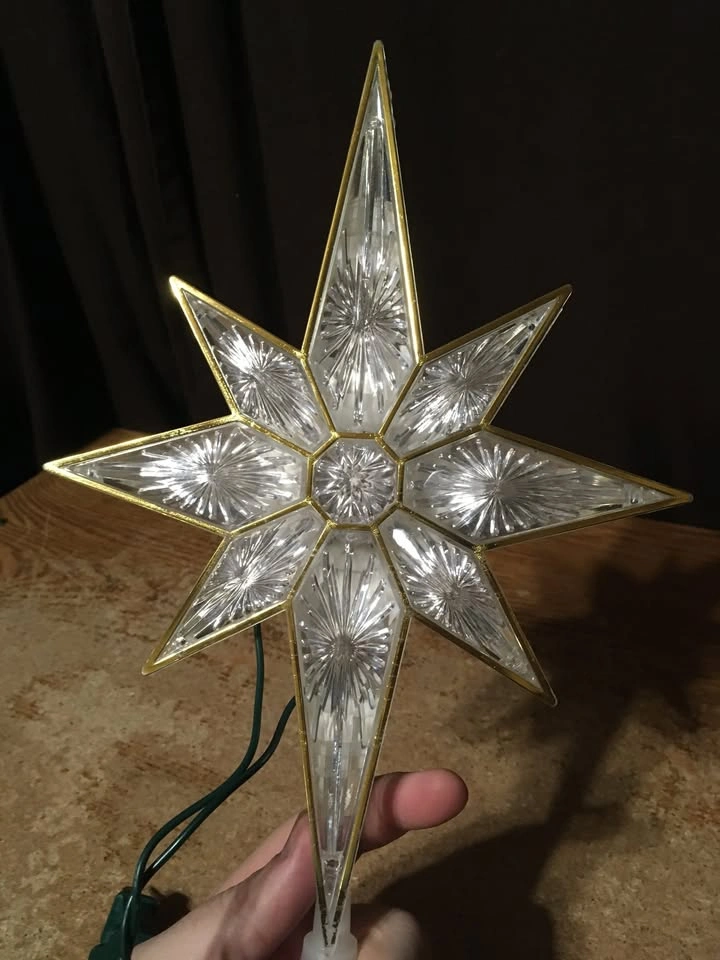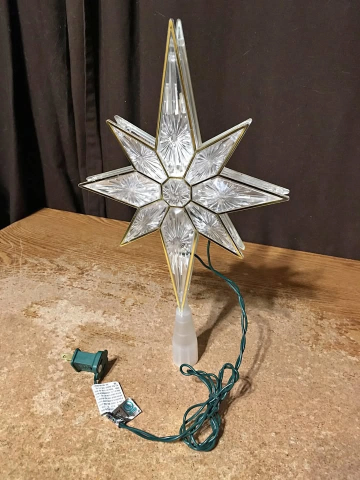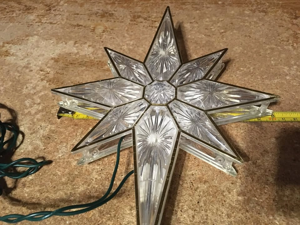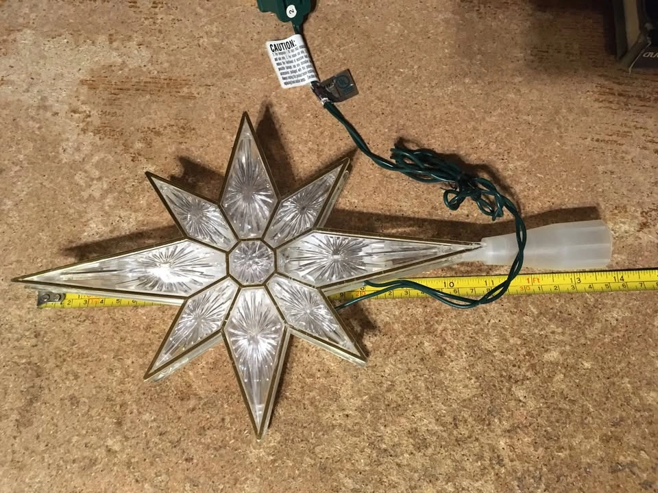 214Good condition, tested and working. It's 13.5" tall, the star part is 10.75", and it's about 7.75" across.