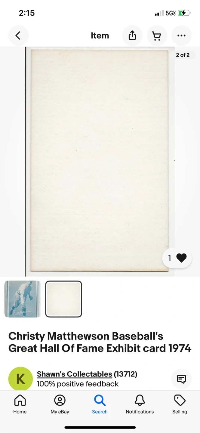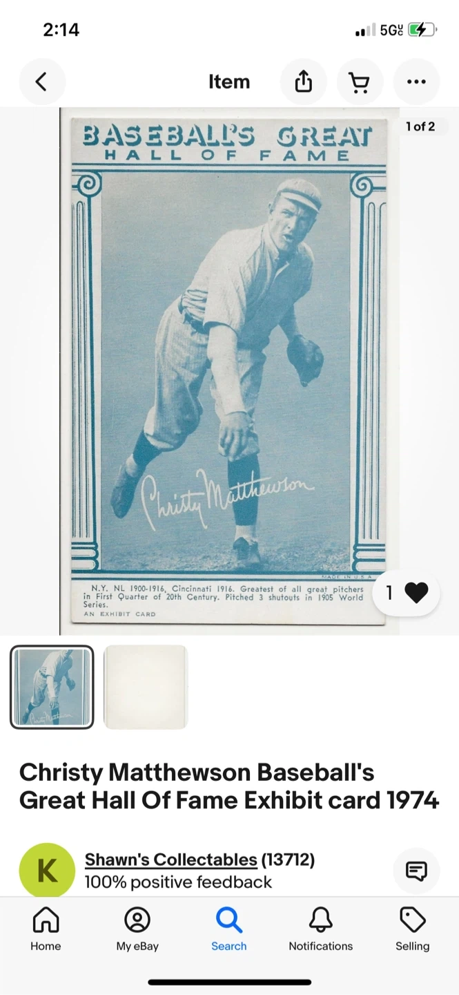 75Selling a Christy Mathewson Baseball's Great Hall Of Fame Exhibit card from 1974