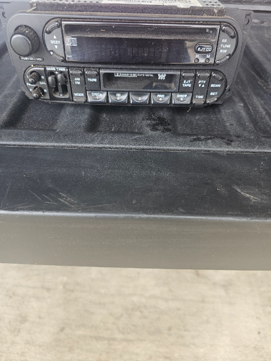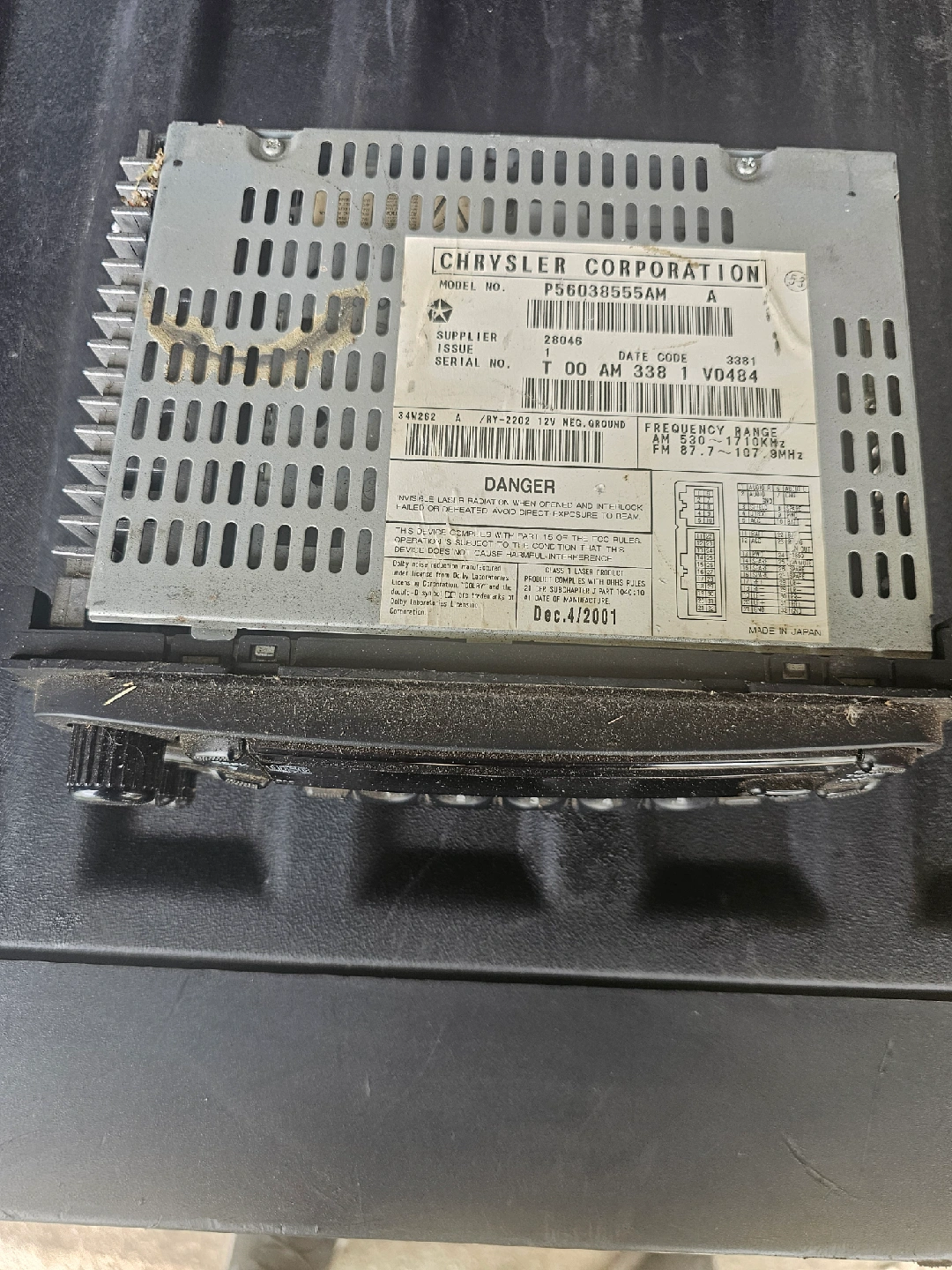 10Selling a Chrysler Corporation car radio. The model number is P56038555AM. It supports AM and FM frequencies, specifically FM 87.7 - 107.9 MHz. Date code is Dec/4/2001