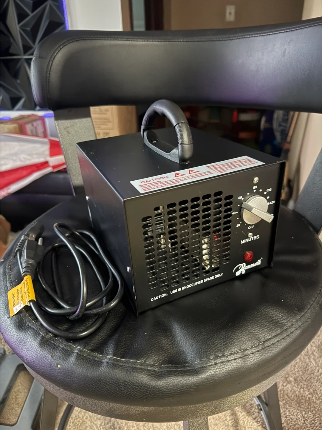 This Remed O3 generator air purifier is designed to remove odors and purify air. It features a timer dial for adjustable operation time. Use in unoccupied spaces only for maximum effectiveness.