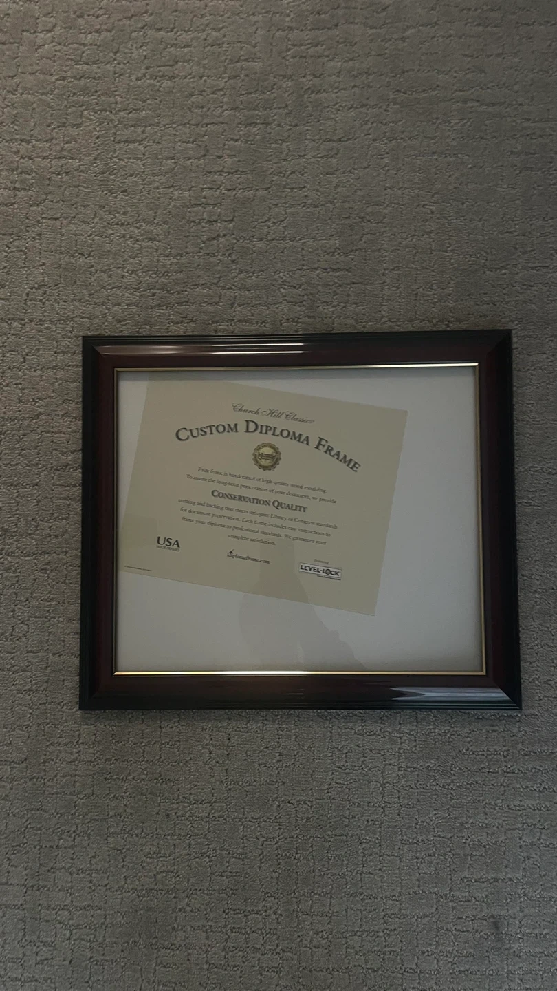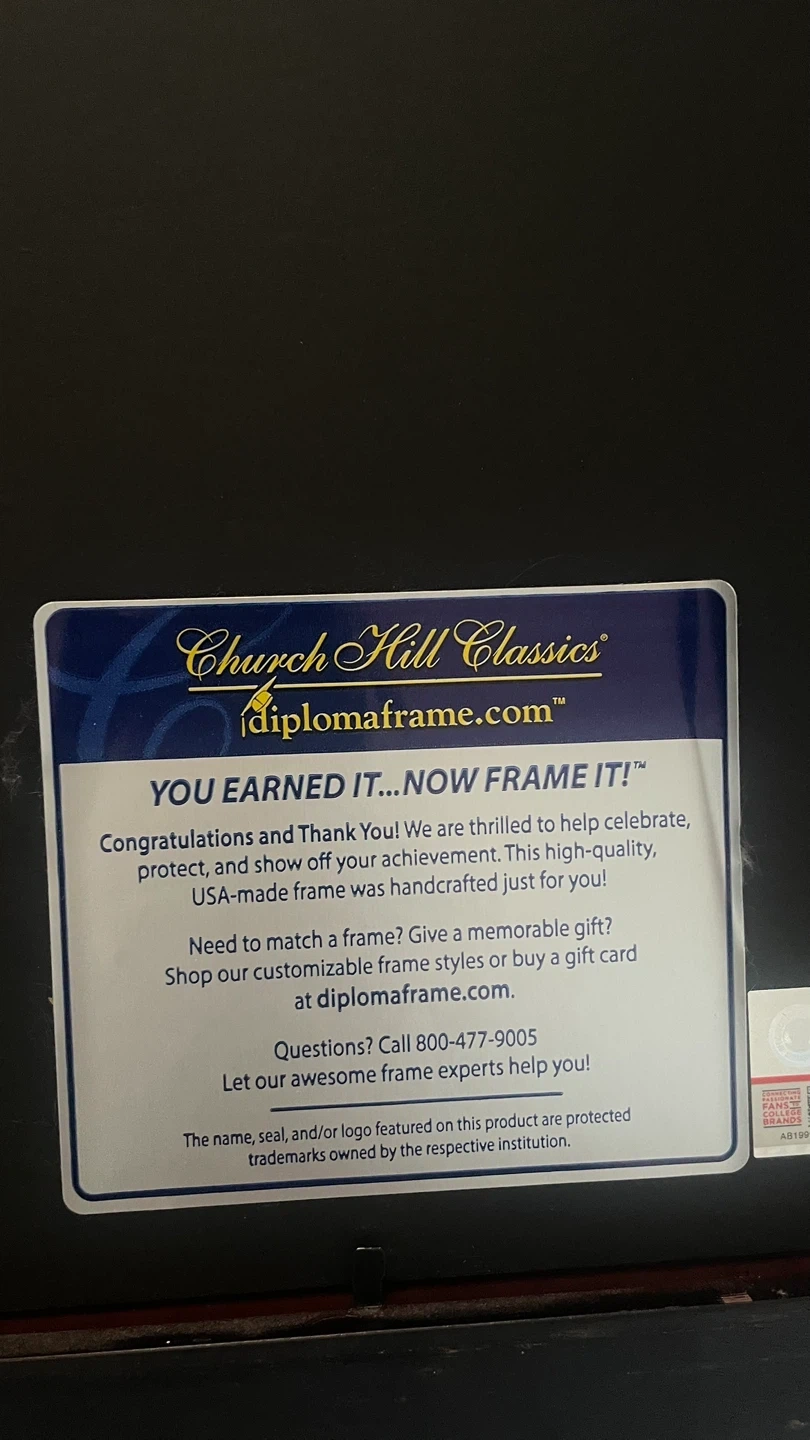 Selling a Church Hill Classics custom diploma frame. It's in great condition and ready to display your achievement! This high-quality, USA-made frame was handcrafted just for you