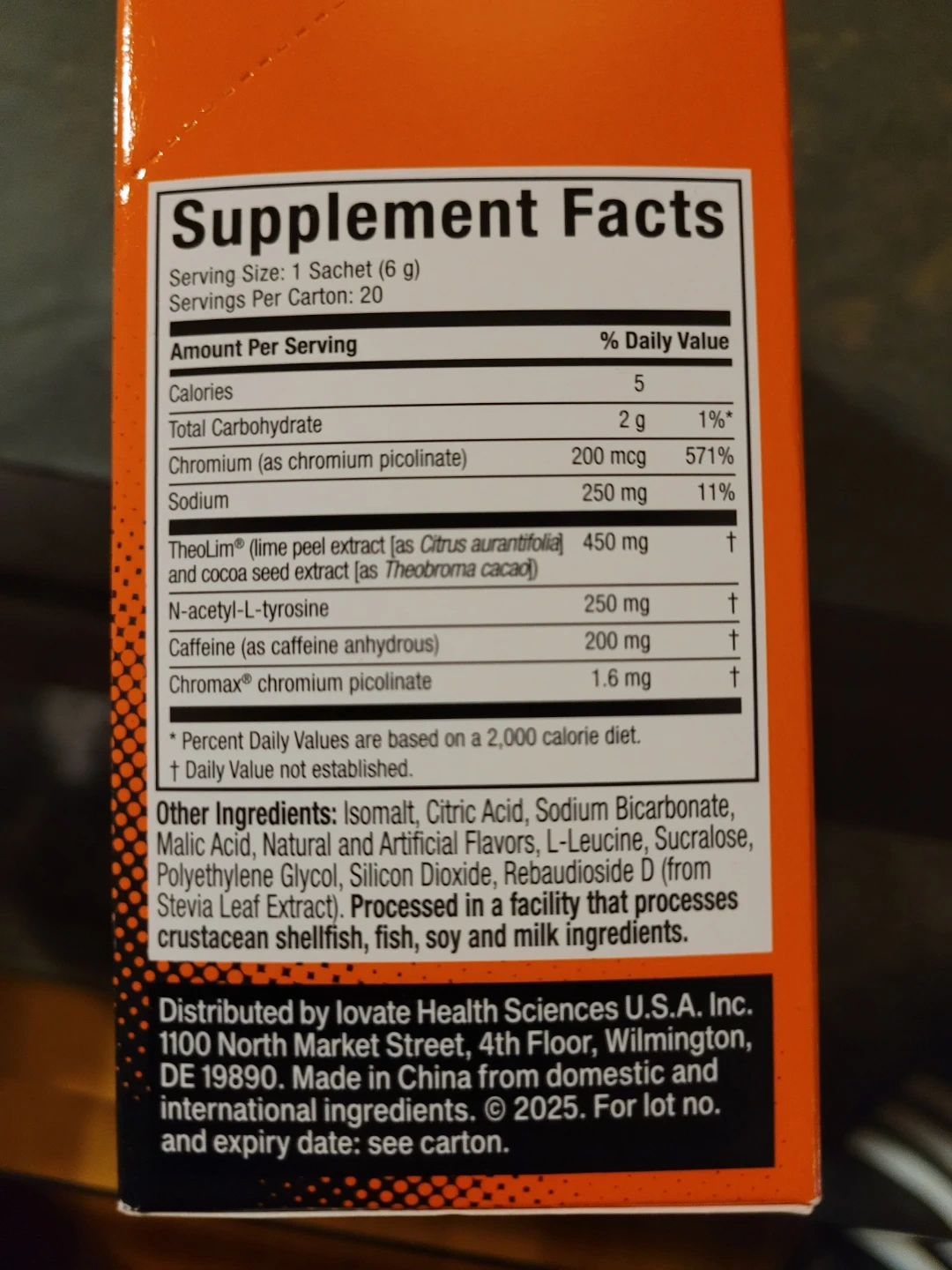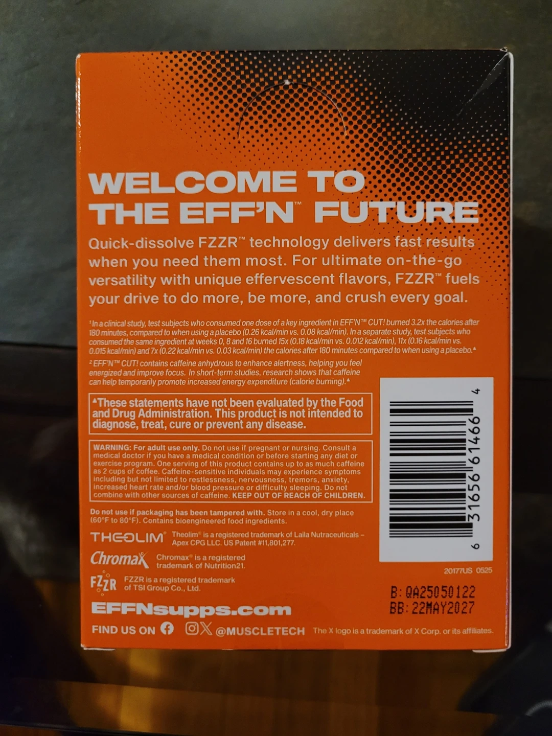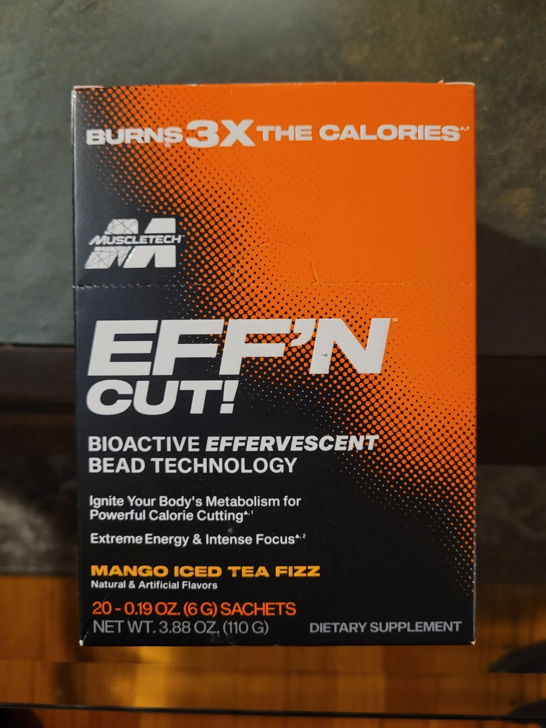 I'm selling a box of Muscletech Effn Cut! in Mango Iced Tea Fizz flavor. This dietary supplement contains 20 sachets.