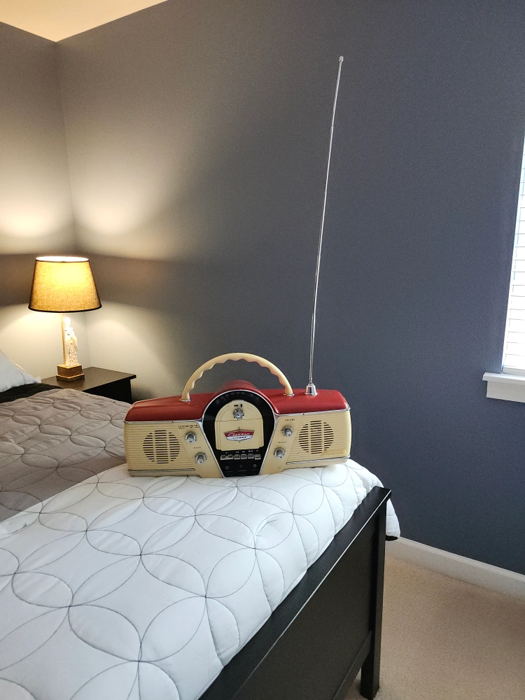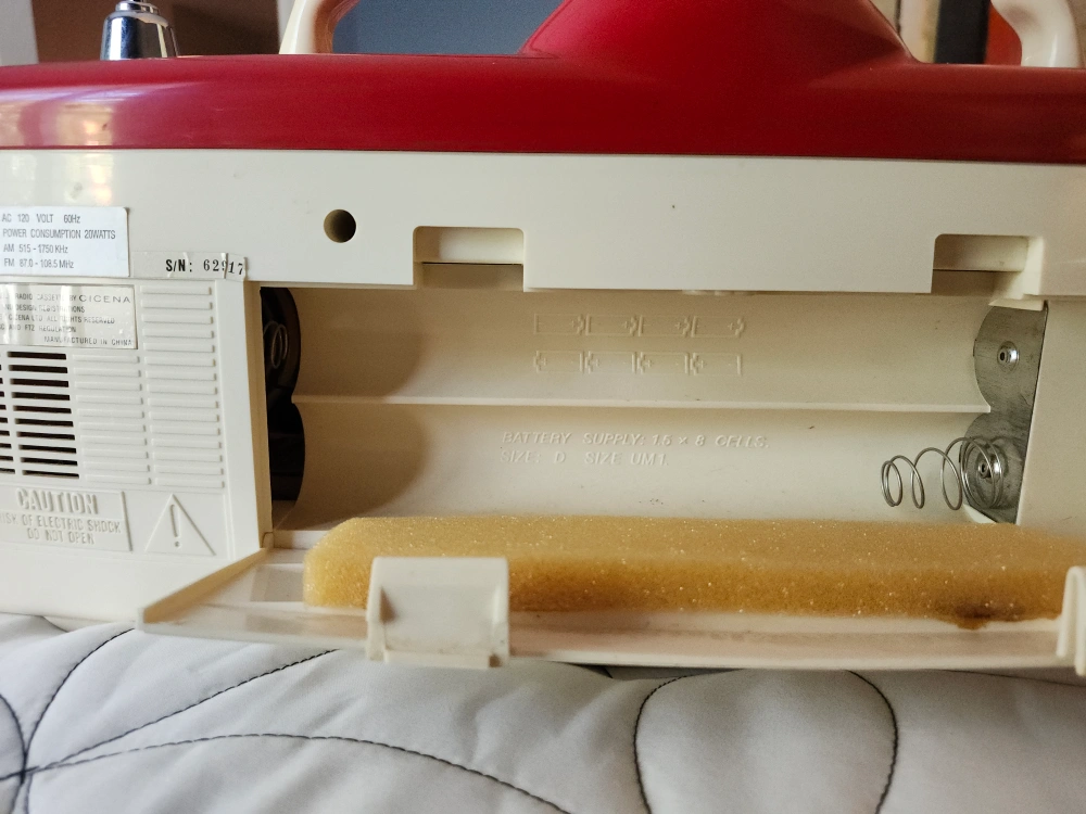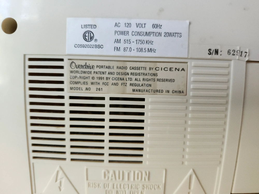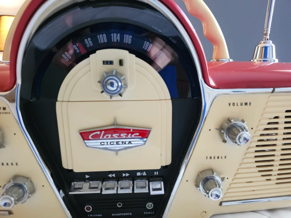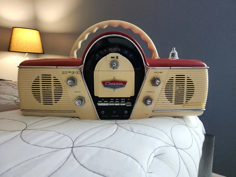 Selling a Cicena Classic Overdrive portable radio cassette player! It features both AM and FM radio, as well as a cassette player. This model has a vintage look with a cream and red color scheme. Perfect for adding a retro touch to any room! Cash Only.