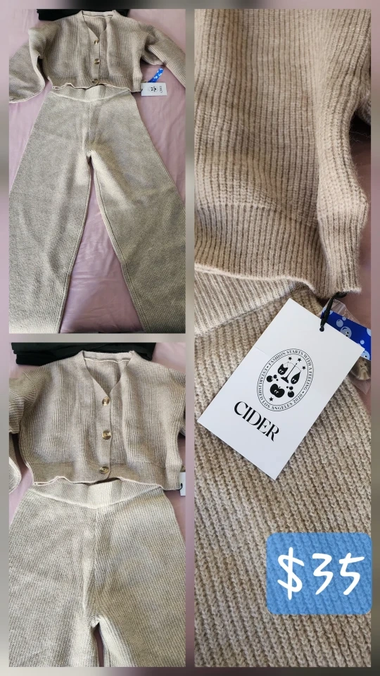 60Selling a cute Cider knit cardigan and pants set! It's a cozy and stylish outfit, perfect for lounging or casual outings. Originally bought for $35, this set is in great condition and ready for a new home!