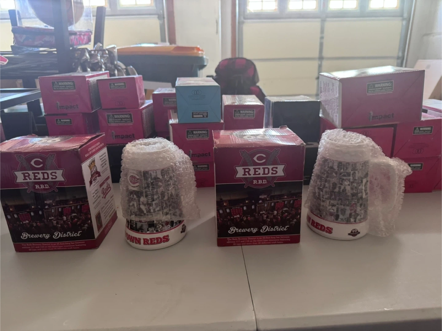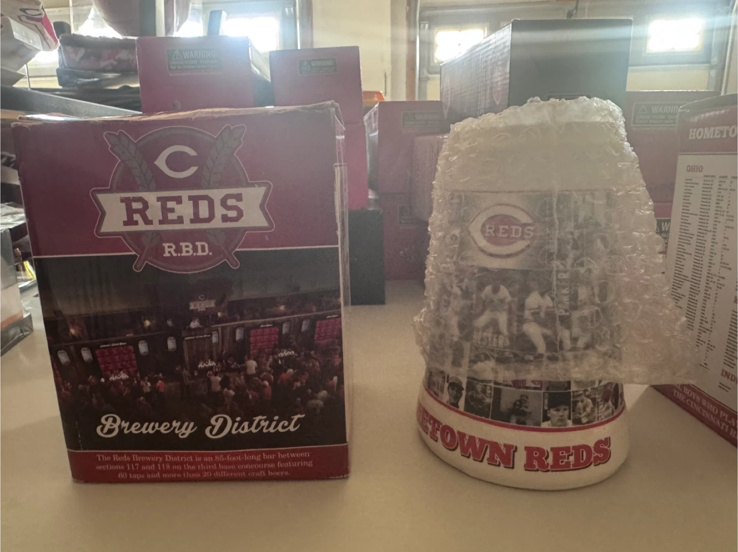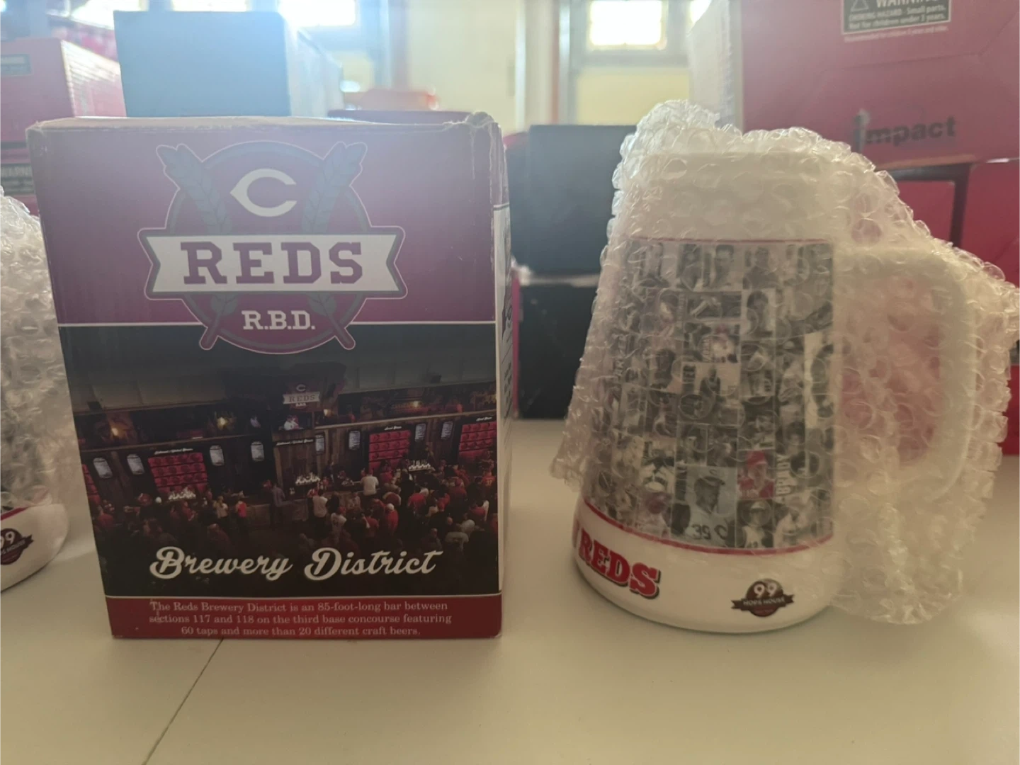 Selling two Cincinnati Reds Brewery District mug! It comes with its original box. It features the Reds R.B.D. logo and a picture of the Brewery District. Great items for any Reds fan!