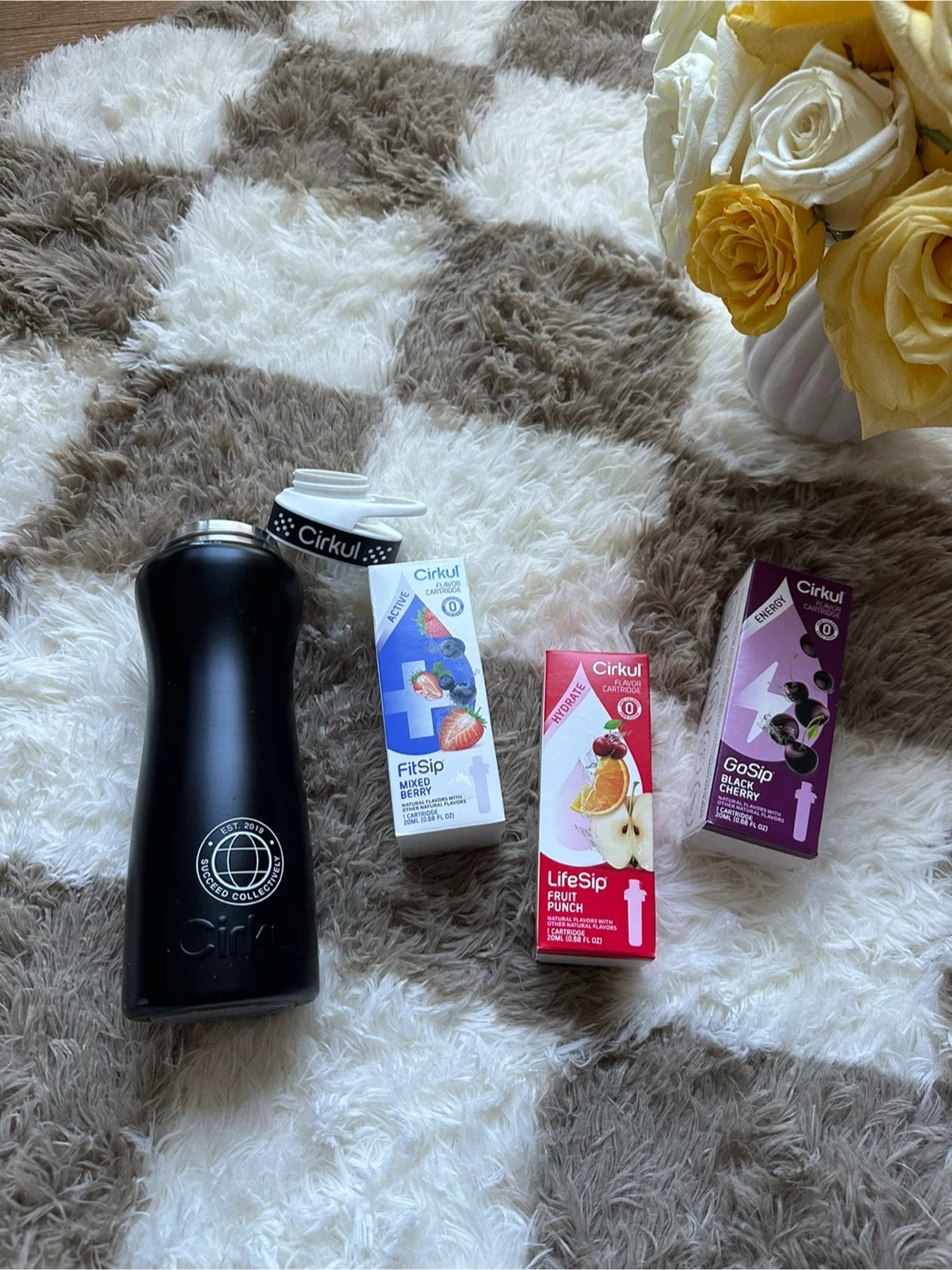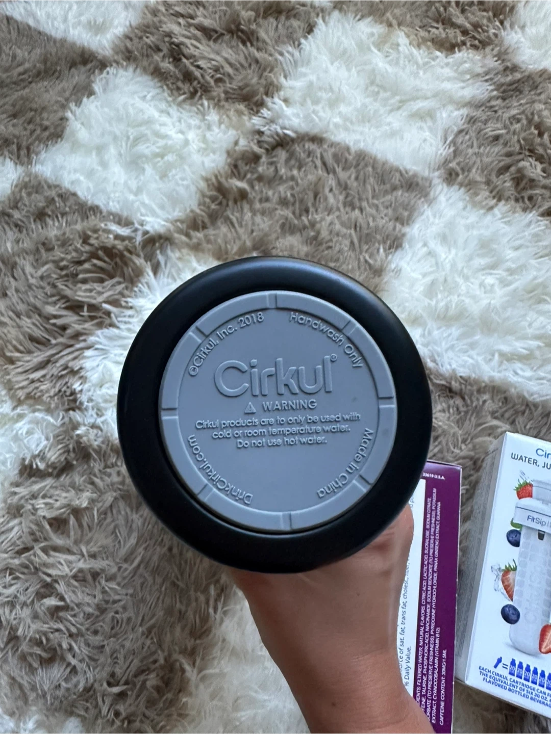 Cirkul brand metal water bottle. Never used but has signs of wear from being in a tiny cabinet. Cartridges included expired in July but should be fine. Open to meet mostly anywhere in or near Manhattan if bundled with something else. Buy something else from my page and I’ll throw this in for free! — Cirkul water bottle with three flavor cartridges. The cartridges include Mixed Berry, Fruit Punch, and Black Cherry flavors. The 'Best By' date on the cartridges is July 2025. The bottle is black and in good condition.