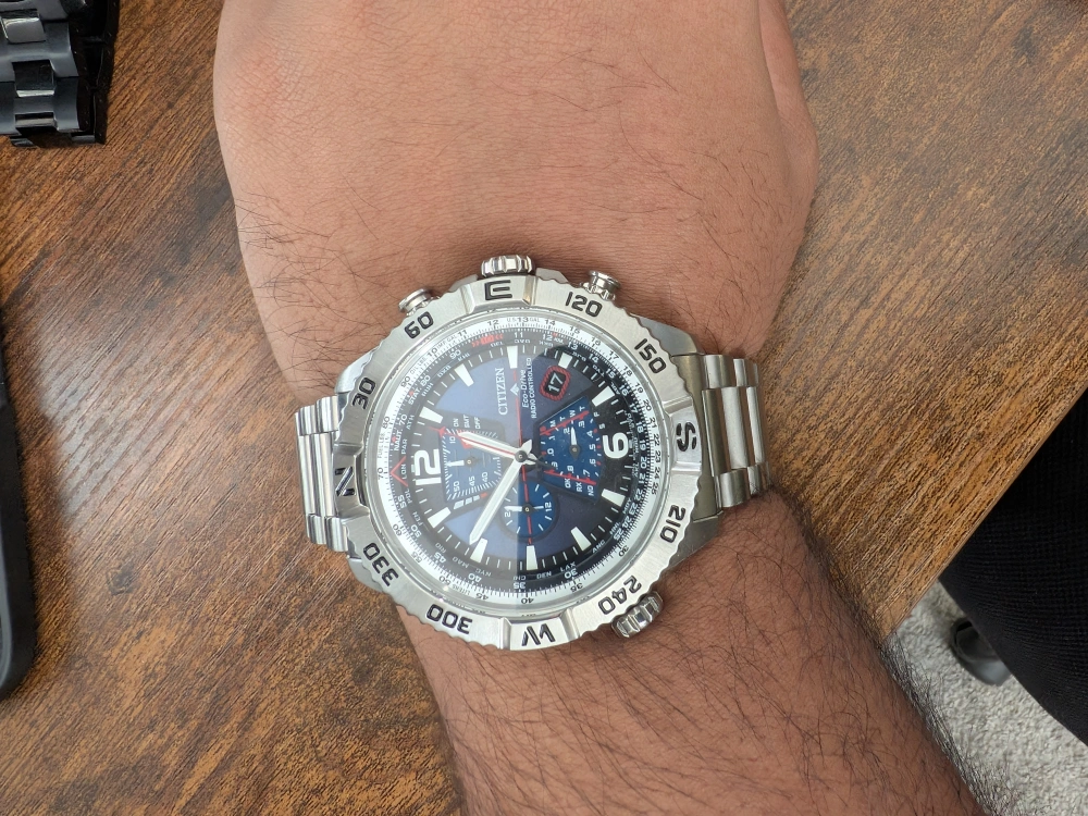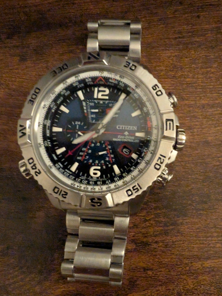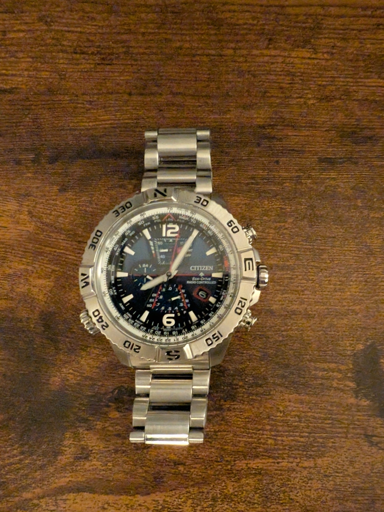 Selling a Citizen Eco-Drive Radio Controlled watch. It has a stainless steel band and a blue dial. It's in great condition and ready for a new owner. Needs no battery, it's solar powered. You can change the time per time zone, per city and the watch automatically calculates everything else.