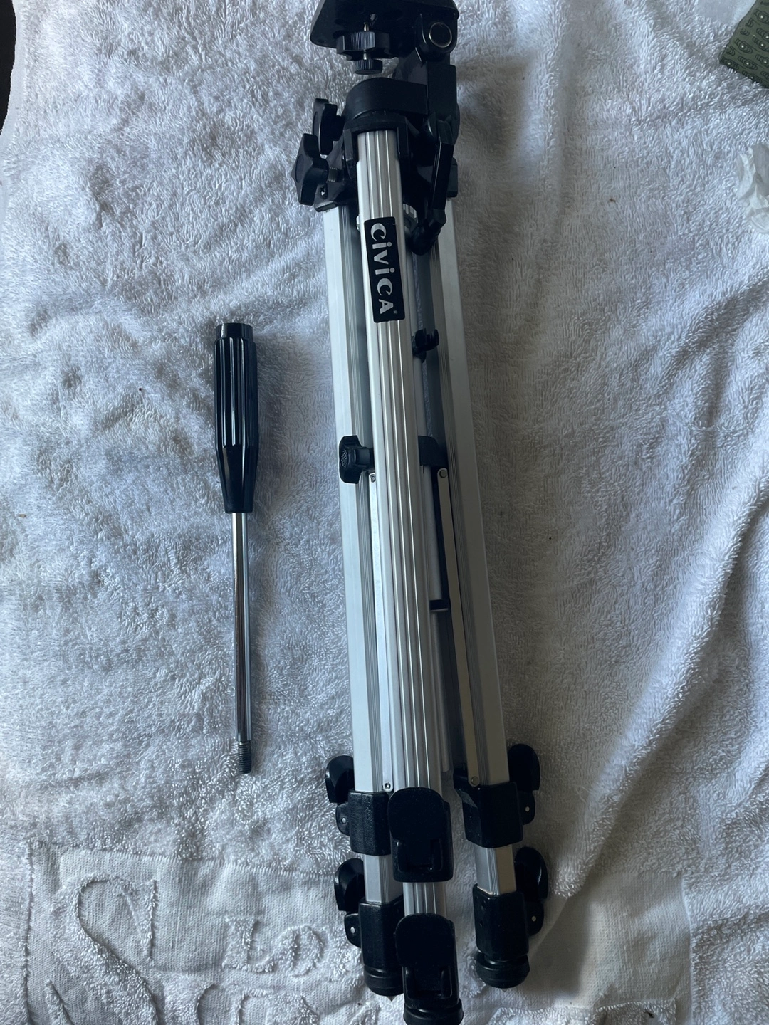 60Lightweight aluminum tripod. Includes a small carrying case and Allen wrench. Great for travel or everyday use. 23” folded