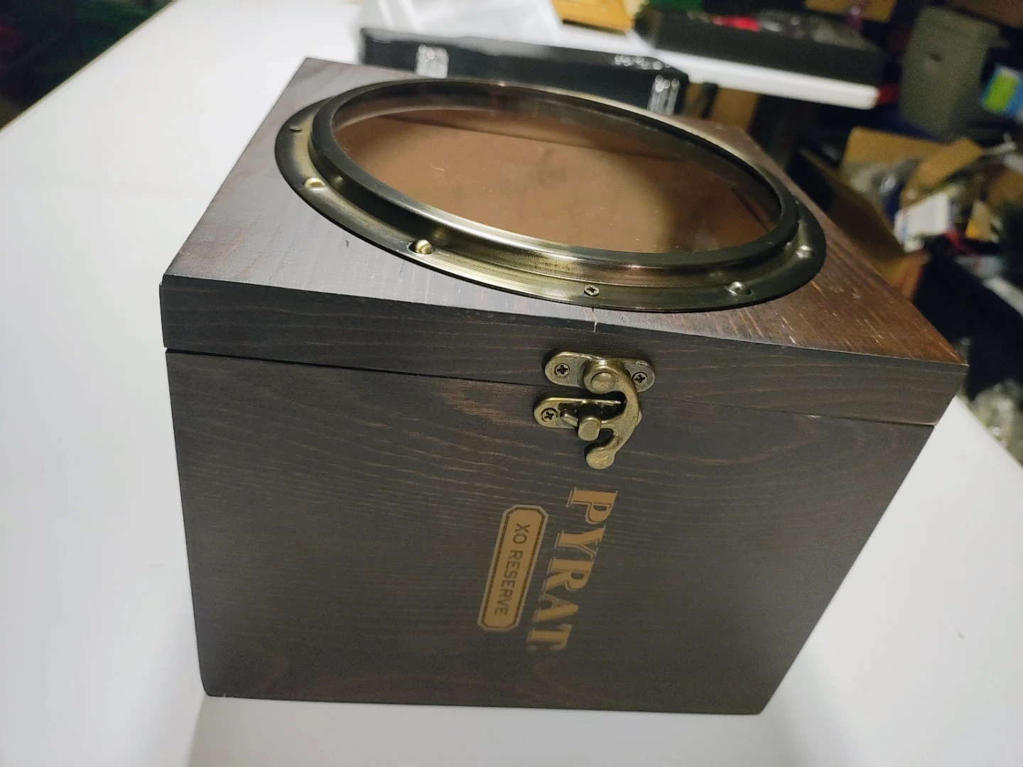 Limited Edition Pyrat Rum XO Reserve 2019 ship porthole display case with steel latch - Empty. Perfect for a collector. Price is firm cash only pick up only. 6 available.