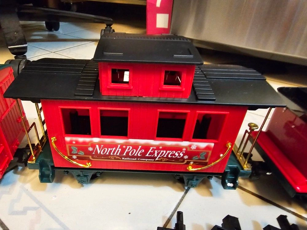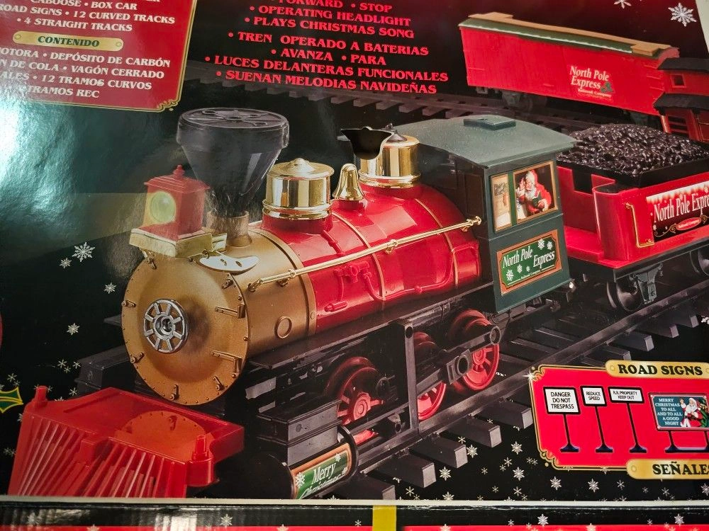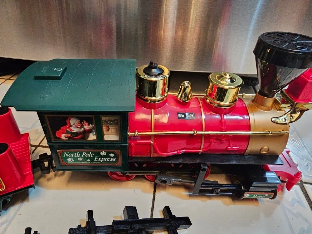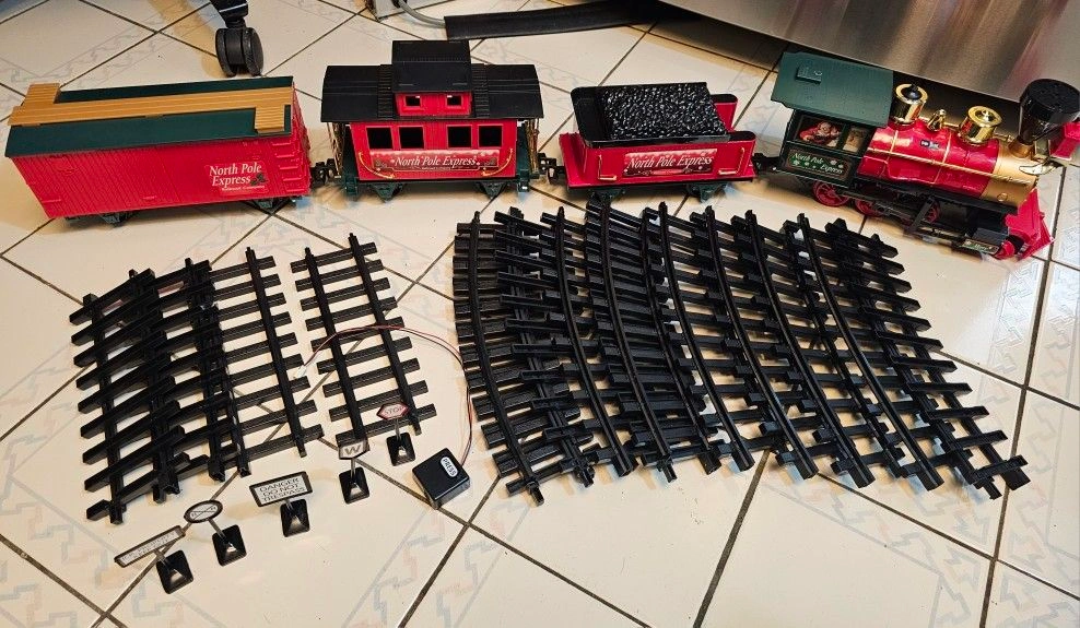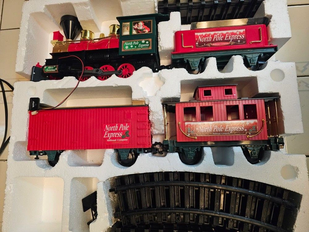 Take a ride on the North Pole Express Christmas Train Set! This toy train set is perfect for young children aged 5-10 years old. It comes pre-built and ready to go with an analog control system.