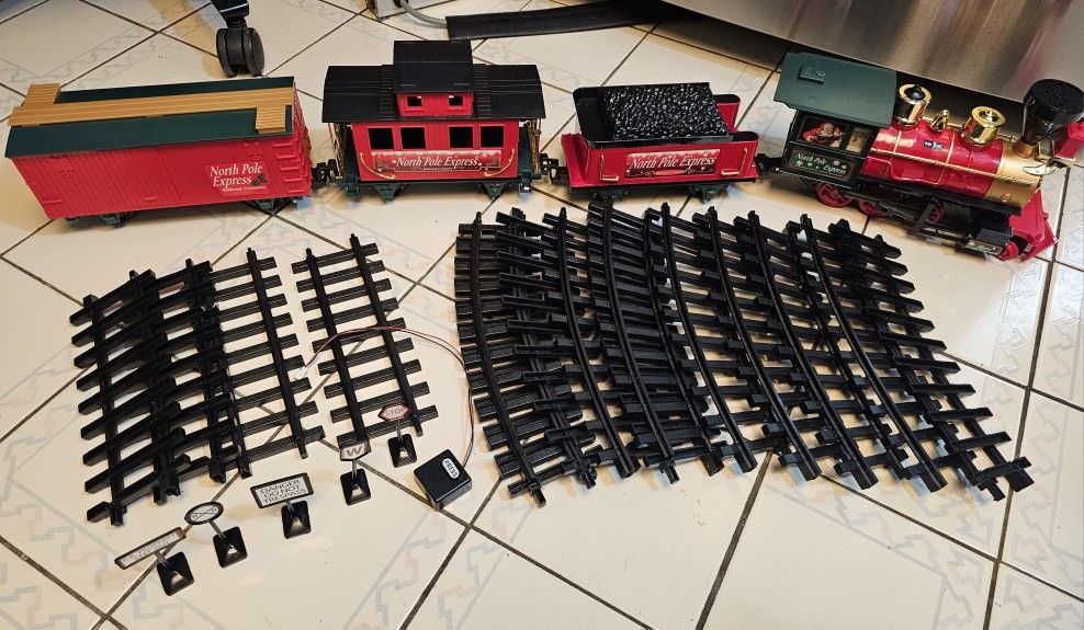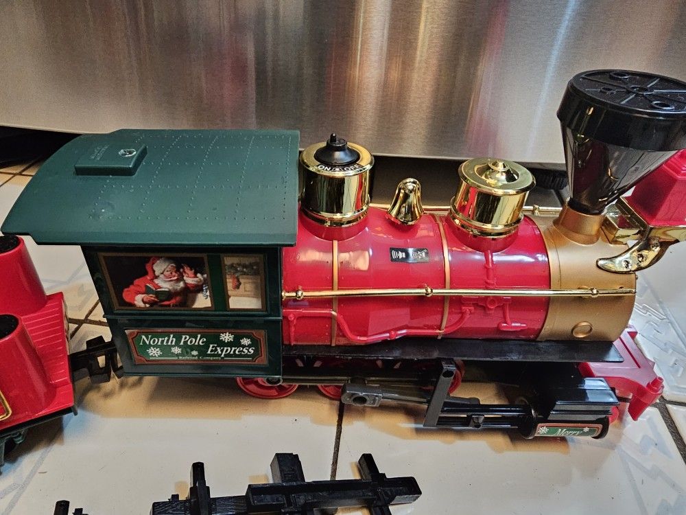 Take a ride on the North Pole Express Christmas Train Set! This toy train set is perfect for young children aged 5-10 years old. It comes pre-built and ready to go with an analog control system.