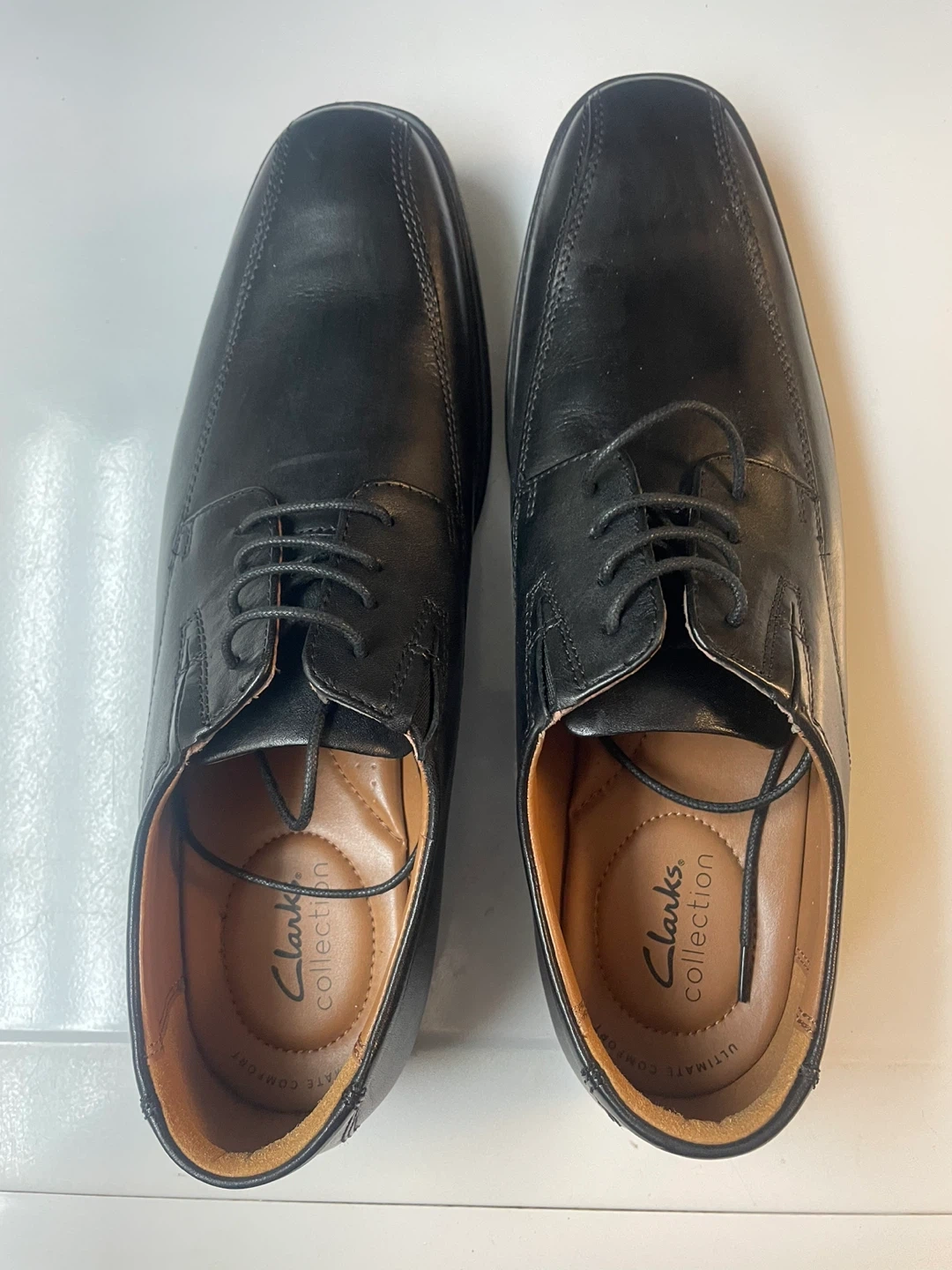 66Selling a pair of Clarks Collection dress shoes in black leather. They're in great shape and ready for a new owner! Perfect for any formal or business casual occasion Size 11 M black , sorry no box.