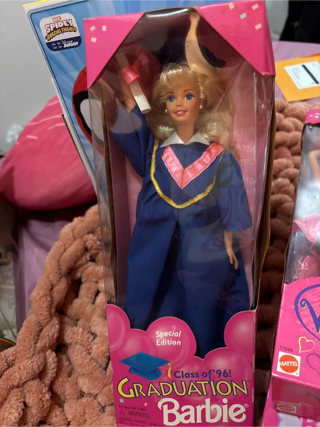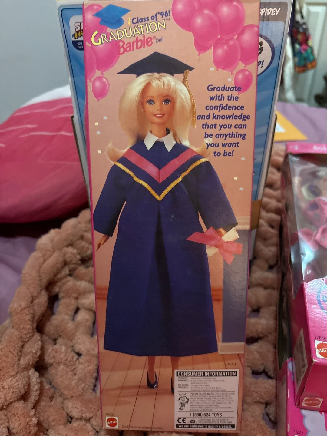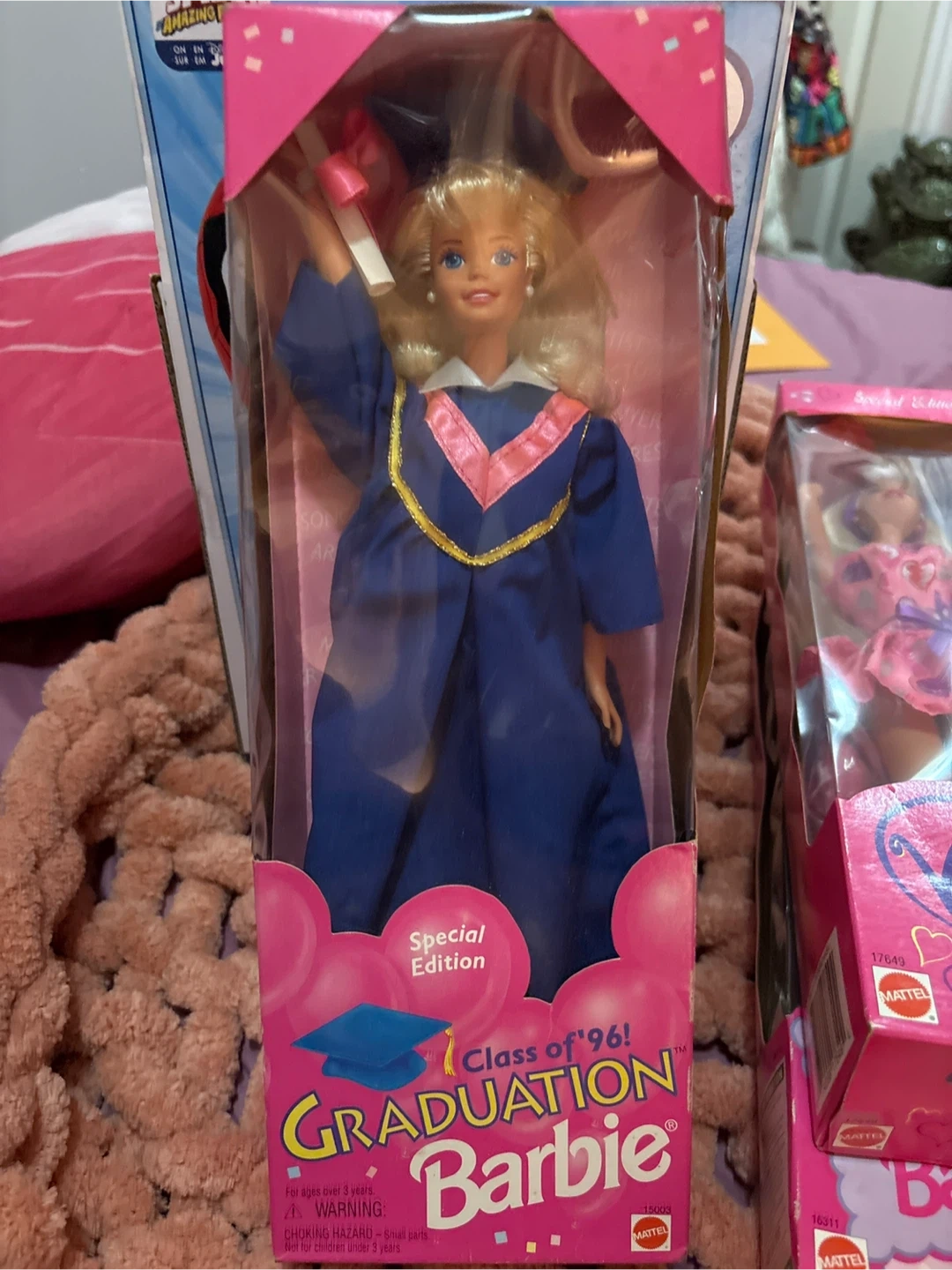 65Selling a brand new, in-box Class of '96 Graduation Barbie Doll! There’s a little damage on one side of the box from storage, otherwise she’s in perfect condition and ready to graduate with confidence and knowledge to be anything you want her to be! A special edition from Mattel, and a great collectible!