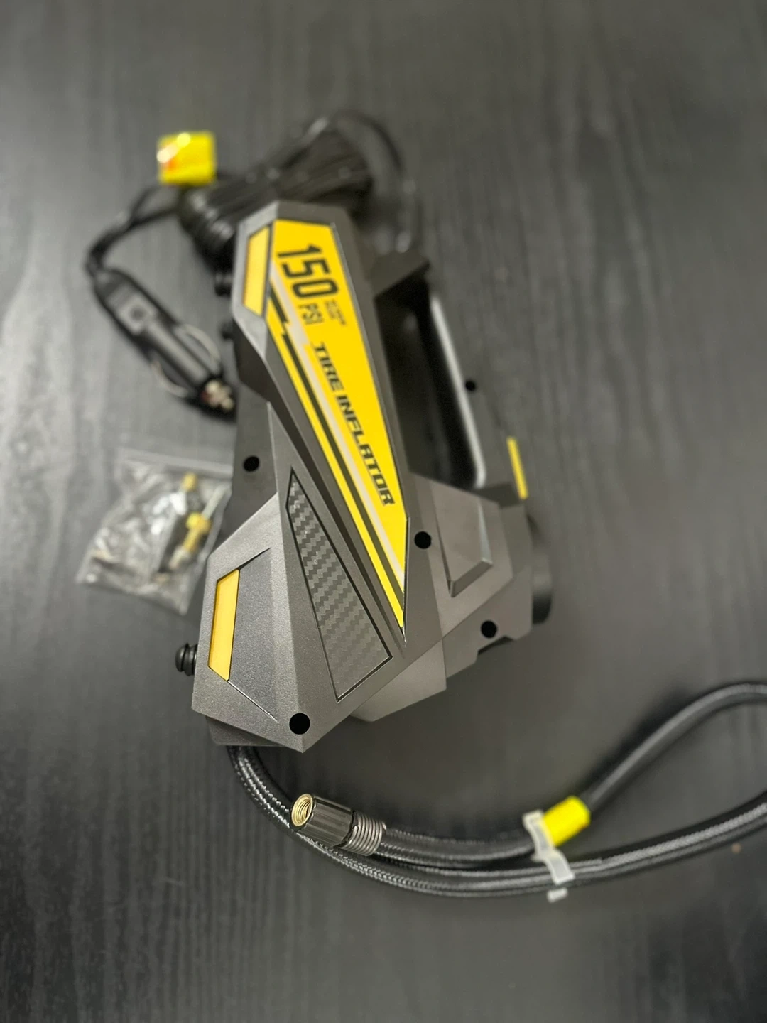 10Selling a Classic Accessories 150 PSI Tire Inflator! It is black and yellow. This inflator is lightweight and portable. It also comes with the box!