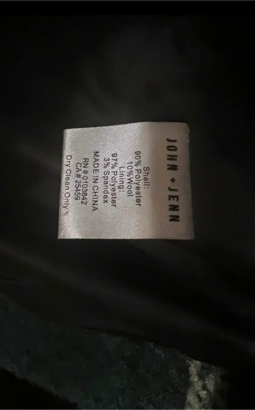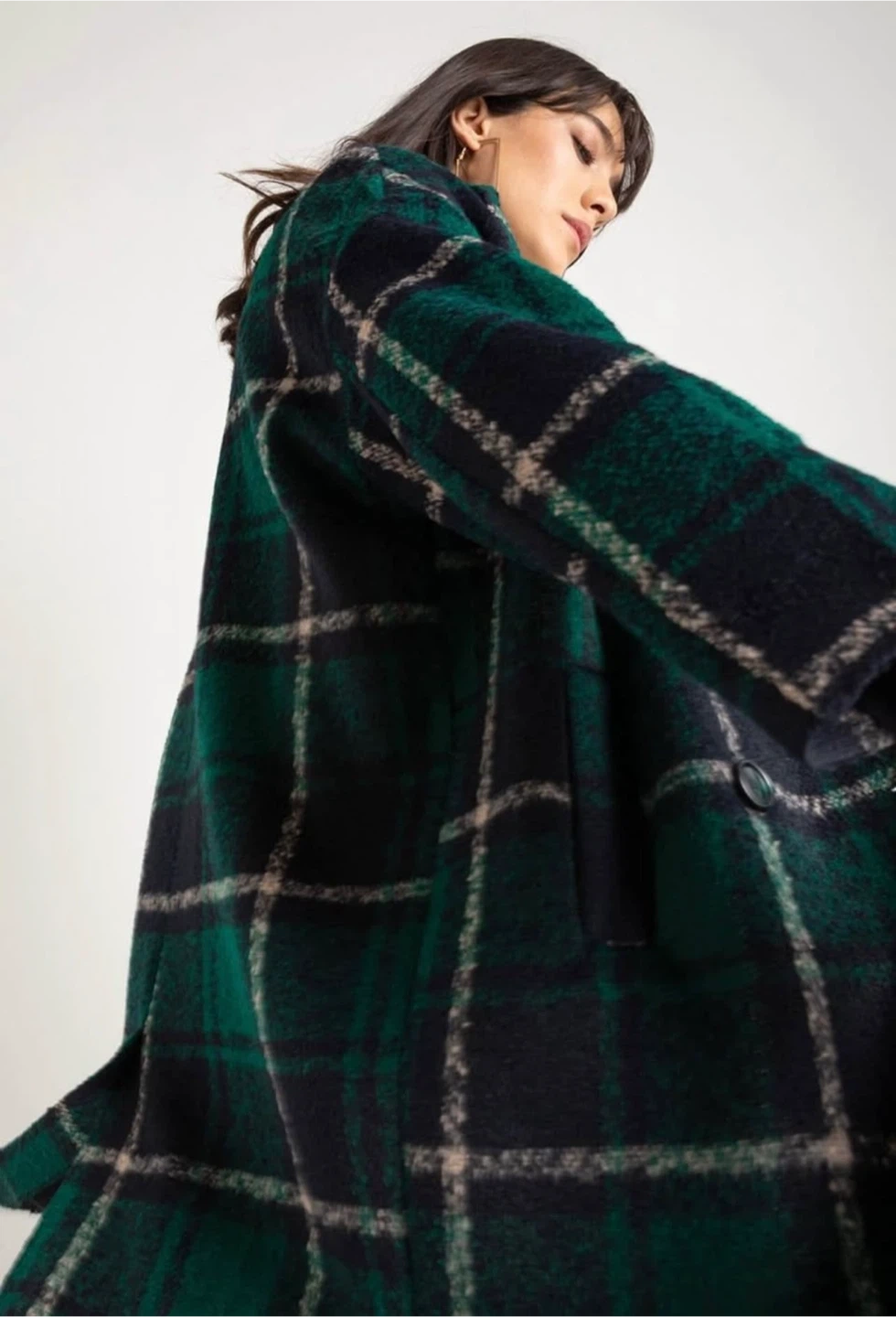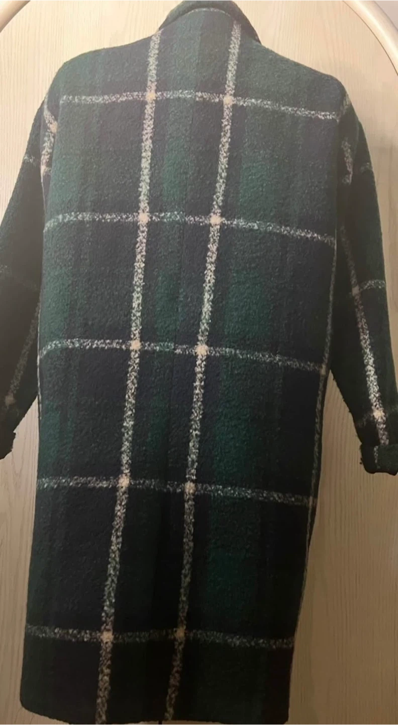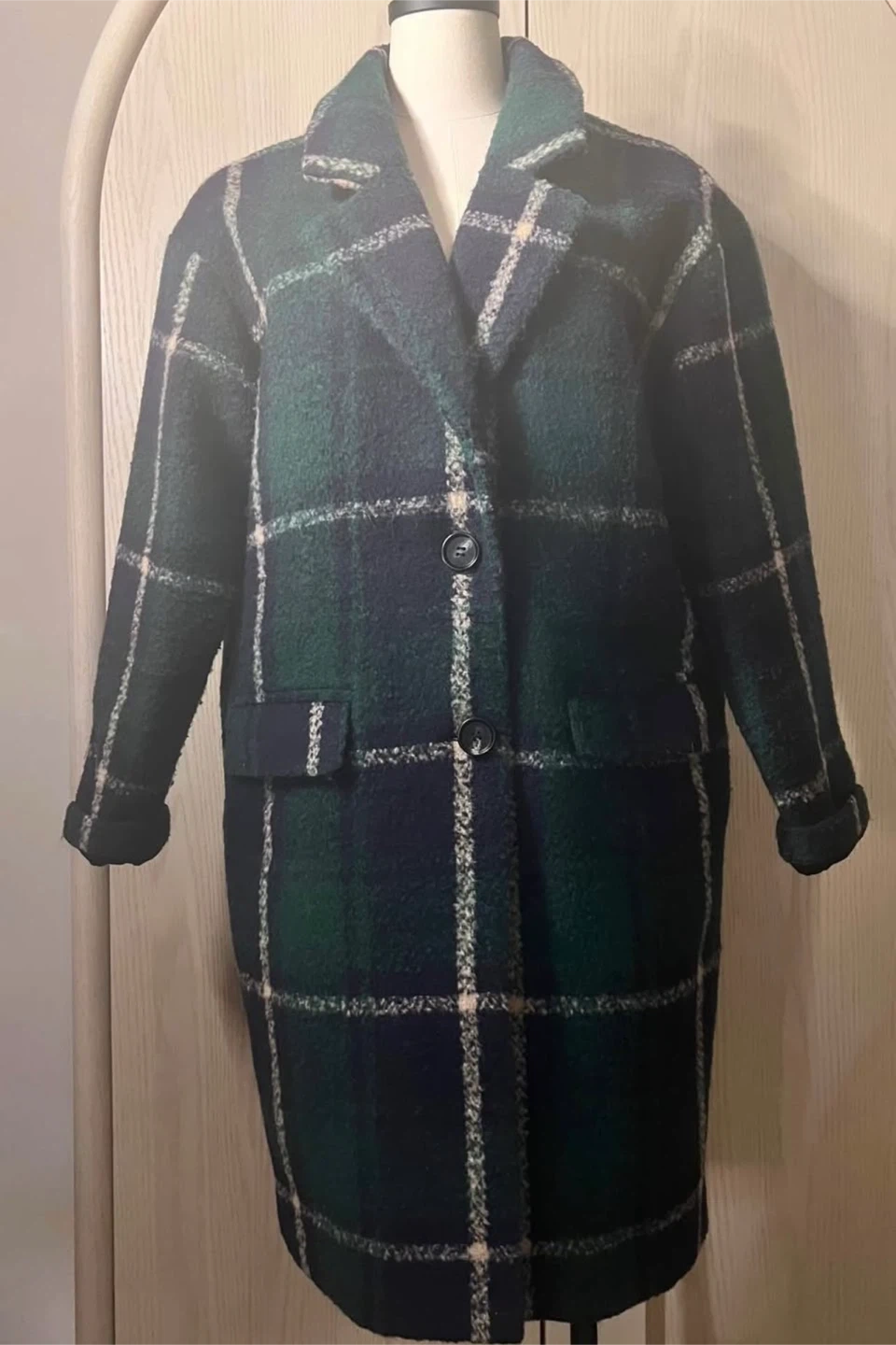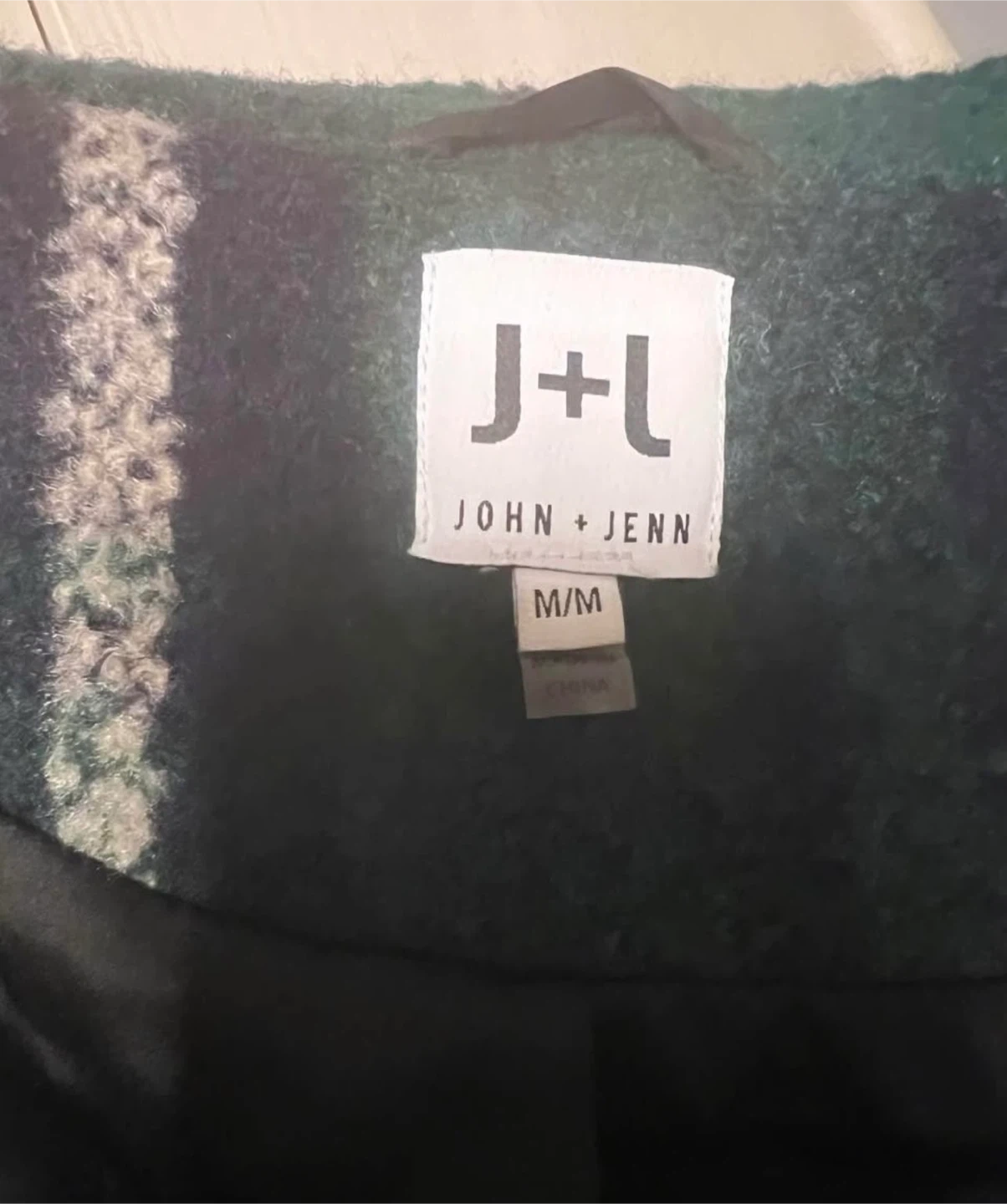 43Cozy up in this stylish John + Jenn coat! It features a classic green plaid pattern and is made from a warm wool blend. The size is M/M. Classic Plaid Pattern Button-Up Front and Two Pockets Very Warm Chic Winter Look Green to Dark Green (depends on lighting)