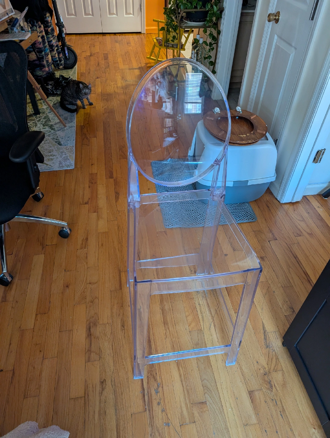 Selling a clear acrylic ghost chair! It's in great condition and ready to add a modern touch to your space. This chair is sturdy and stylish!