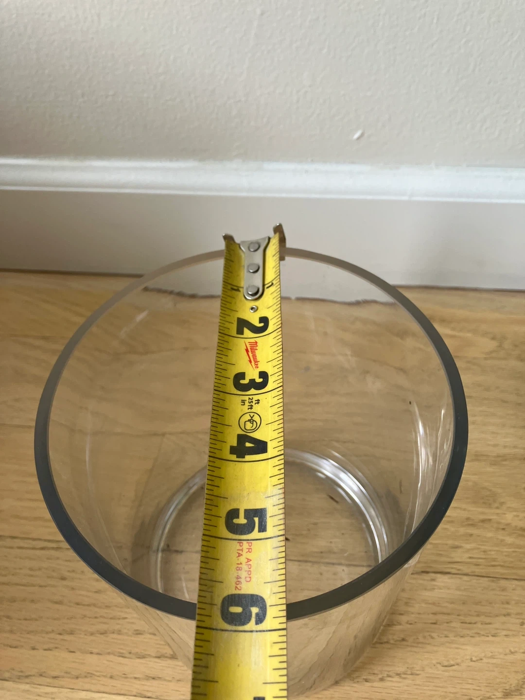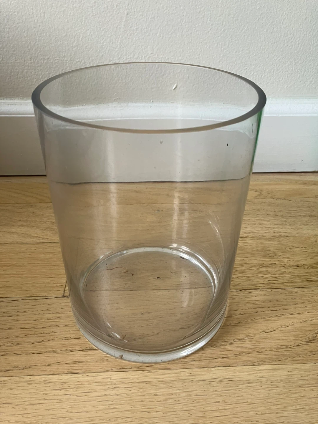 Selling a clear glass cylinder vase. It's about 6 inches tall and would be perfect for flowers or as a decorative piece