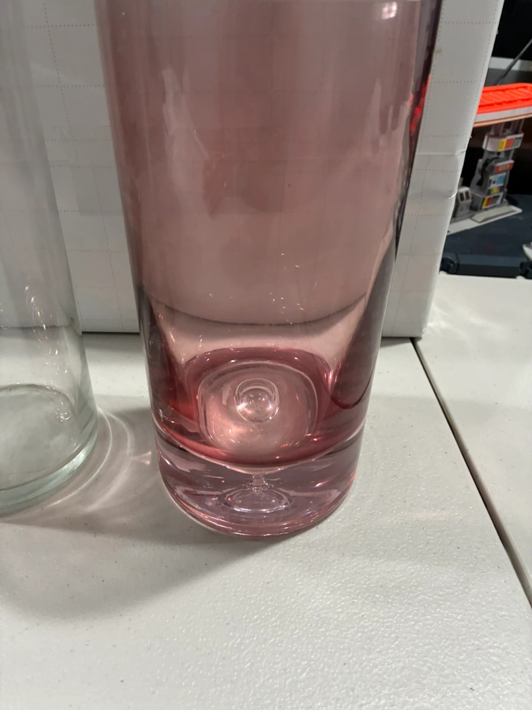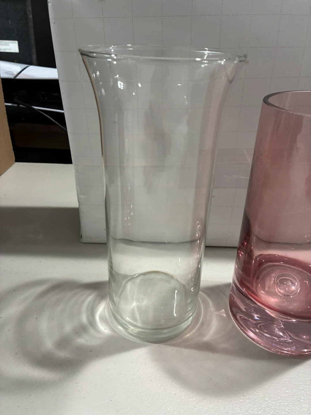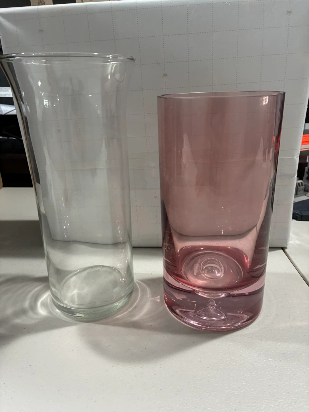 Clear & Pink Glass Vases Selling two vases, one clear glass and one pink glass. They're in great shape and ready to add some style to your home Pick up in Norridge Price $5 ea