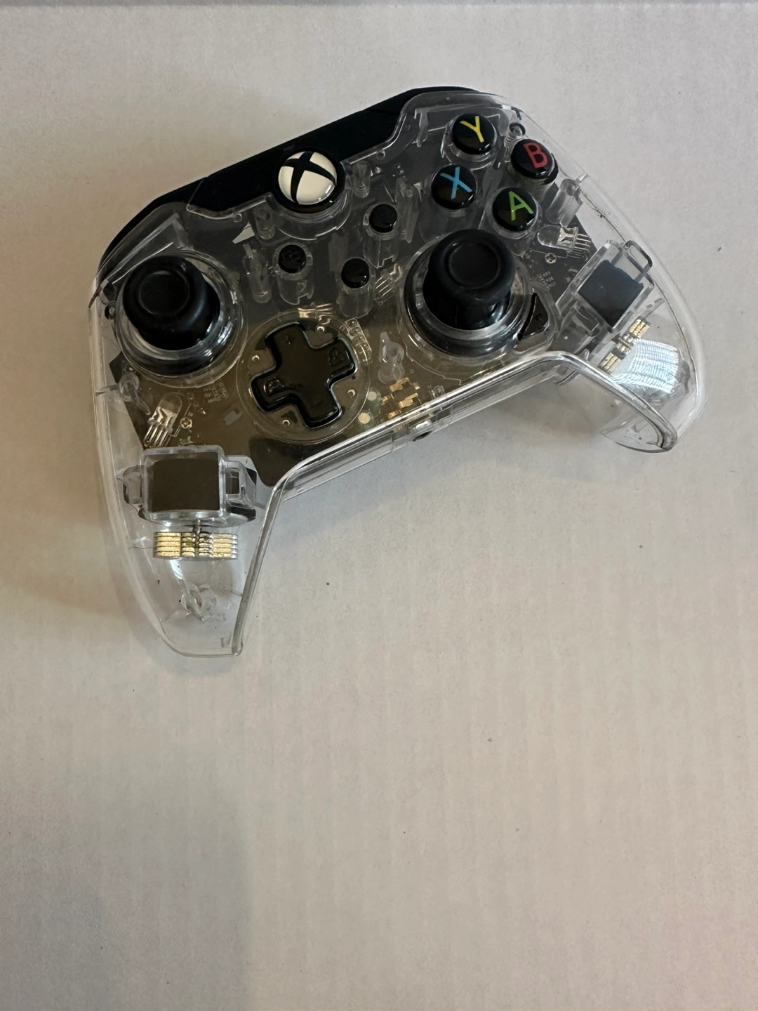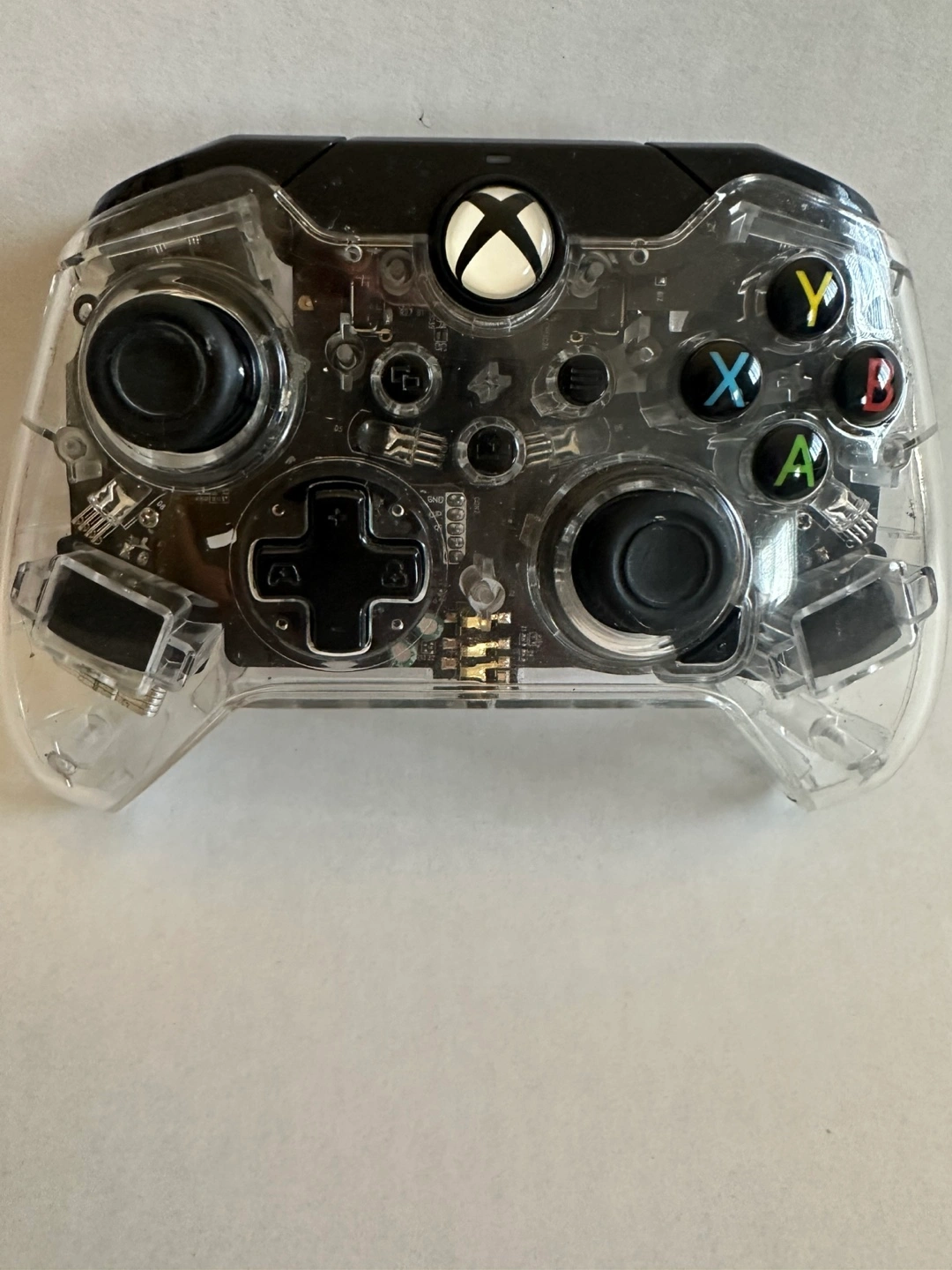 64Transparent controller for Xbox. Wired connection. Includes all buttons and joysticks. Afterglow brand.