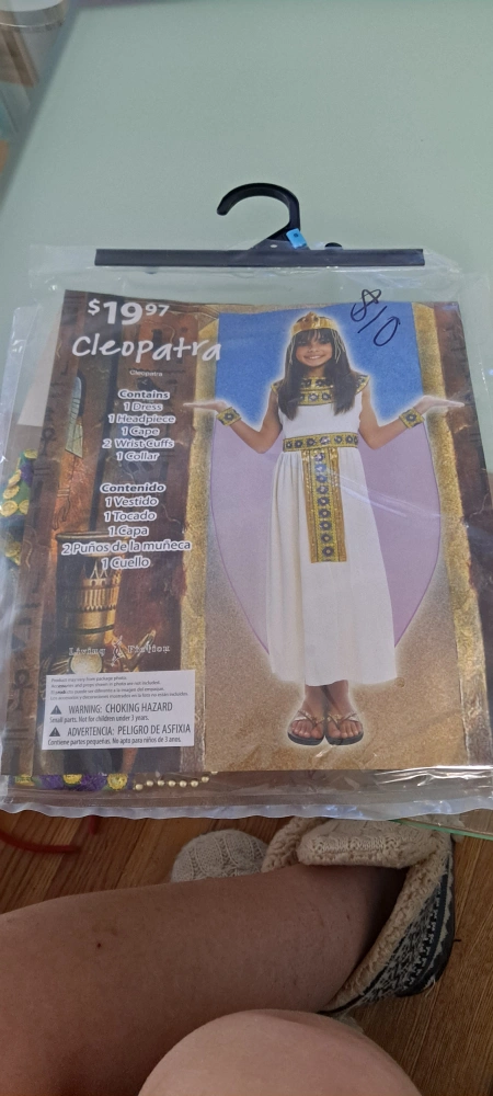 Selling a complete Cleopatra costume! Includes the dress, headpiece, cape, wrist cuffs, and collar. Originally priced at $19.97.