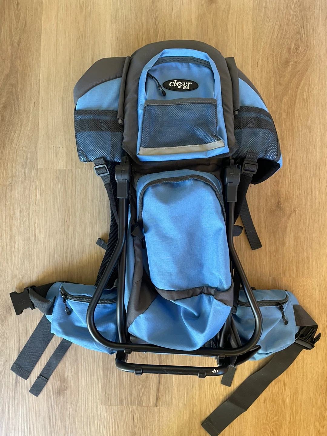 Selling a Clevr brand baby backpack carrier in blue and gray. Used only twice for travel. Original price $129.99. Great condition.