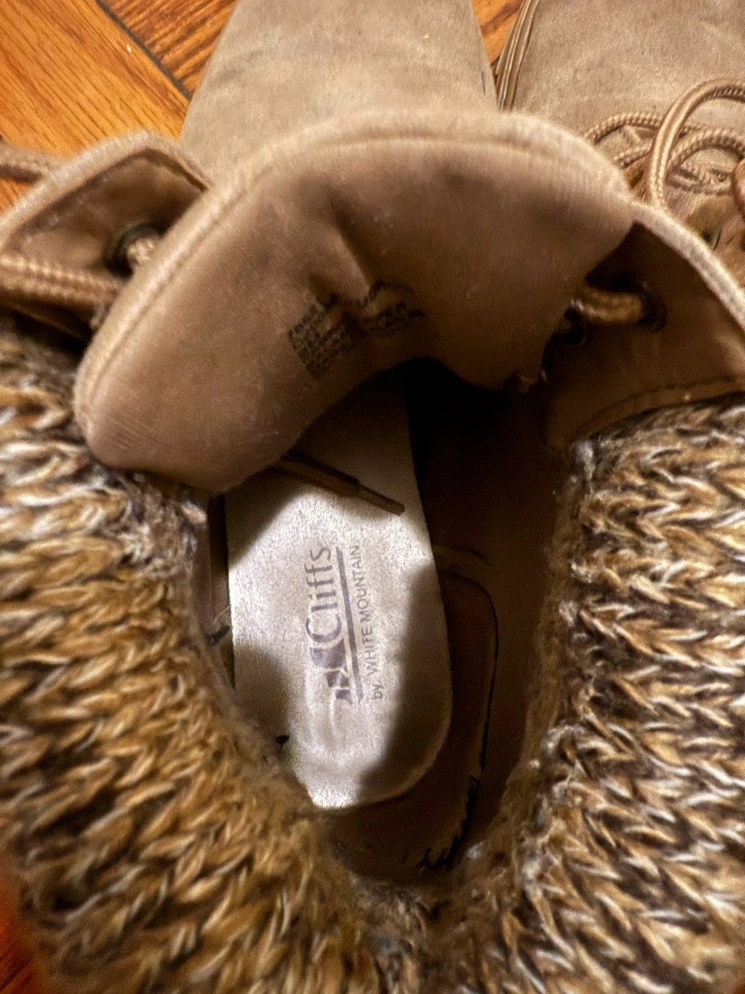 10Selling a pair of Cliffs by White Mountain ankle boots in a taupe color. They're a size 9.5 These boots feature a cozy, knitted ankle detail and are perfect for adding a touch of style to your casual outfits!