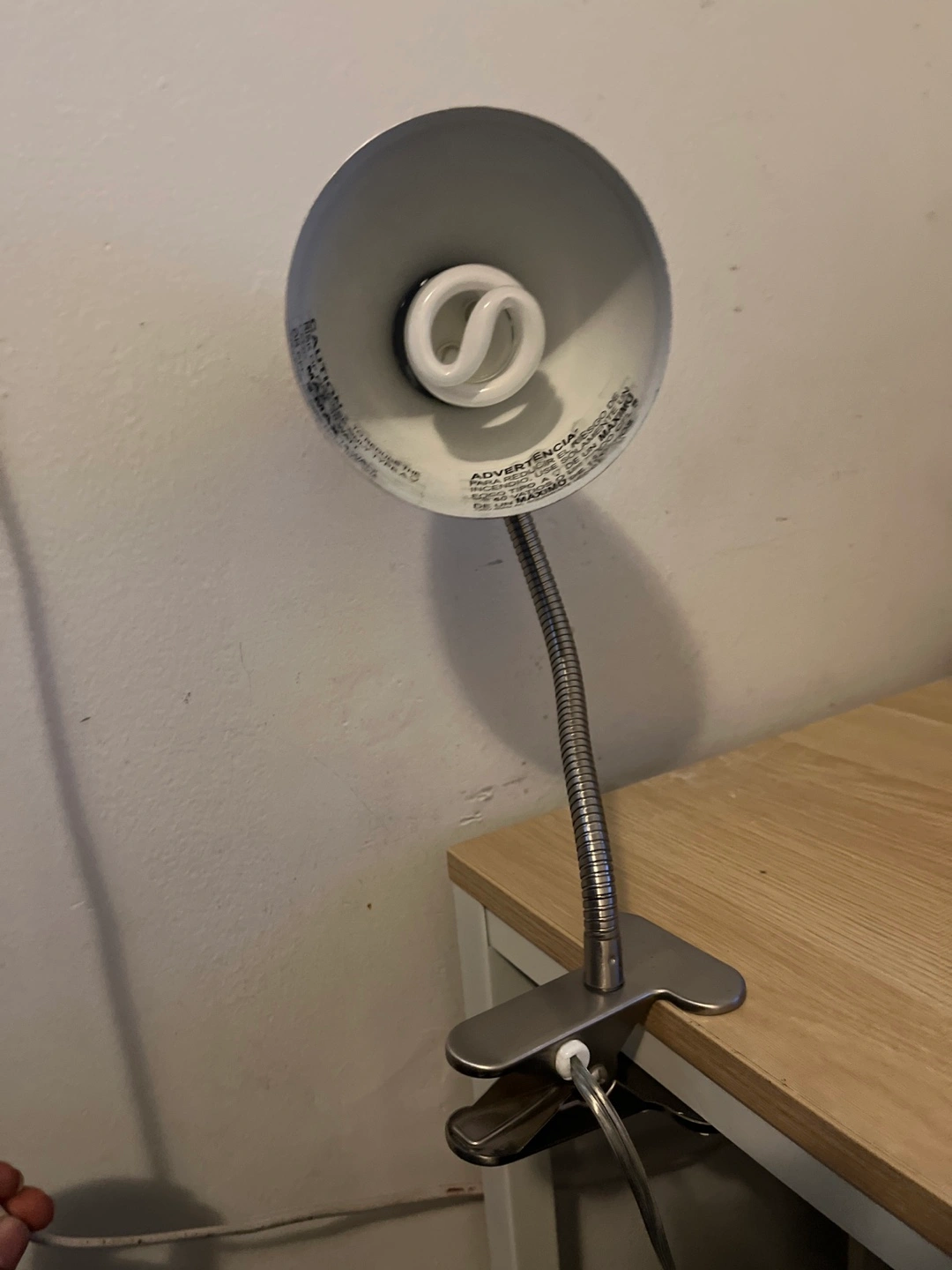 Selling a clip-on desk lamp! It's in good condition and ready to brighten up your workspace. Perfect for desks, shelves, or headboards. It features a flexible gooseneck for adjustable lighting