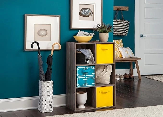 ClosetMaid Cubeicals 6 Cube Storage Shelf Organizer Bookshelf. Room Type: Closet, Living Room, Office, Playroom Number of Shelves: 6 Special Feature: Heavy Duty Product Dimensions: 11.69"D x 24.13"W x 35.88"H Style: Cube Finish Type: Laminated Brand: ClosetMaid Product Care Instructions: Wipe with Dry Cloth Size: 6-Cube - Vertical & Horizontal Options, Easy Assembly - Natural Gray Wood Finish With six 11.25 in. cubbies, this unit is great for that extra needed storage space in your living, laundry, office, or entryway space. Create storage and display space for any living area in your home for books, garments, décor, picture frames or keepsakes; Ideal for trendy organization with 3 back panels Cube compartments measure: 11.25 in. H x 11.25 in. W x 11.75 in. D Assembled: 24.12” W x 11.62” D x 35.87” H